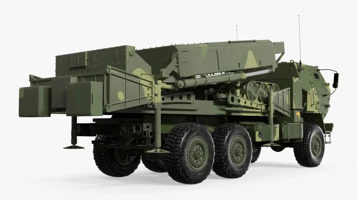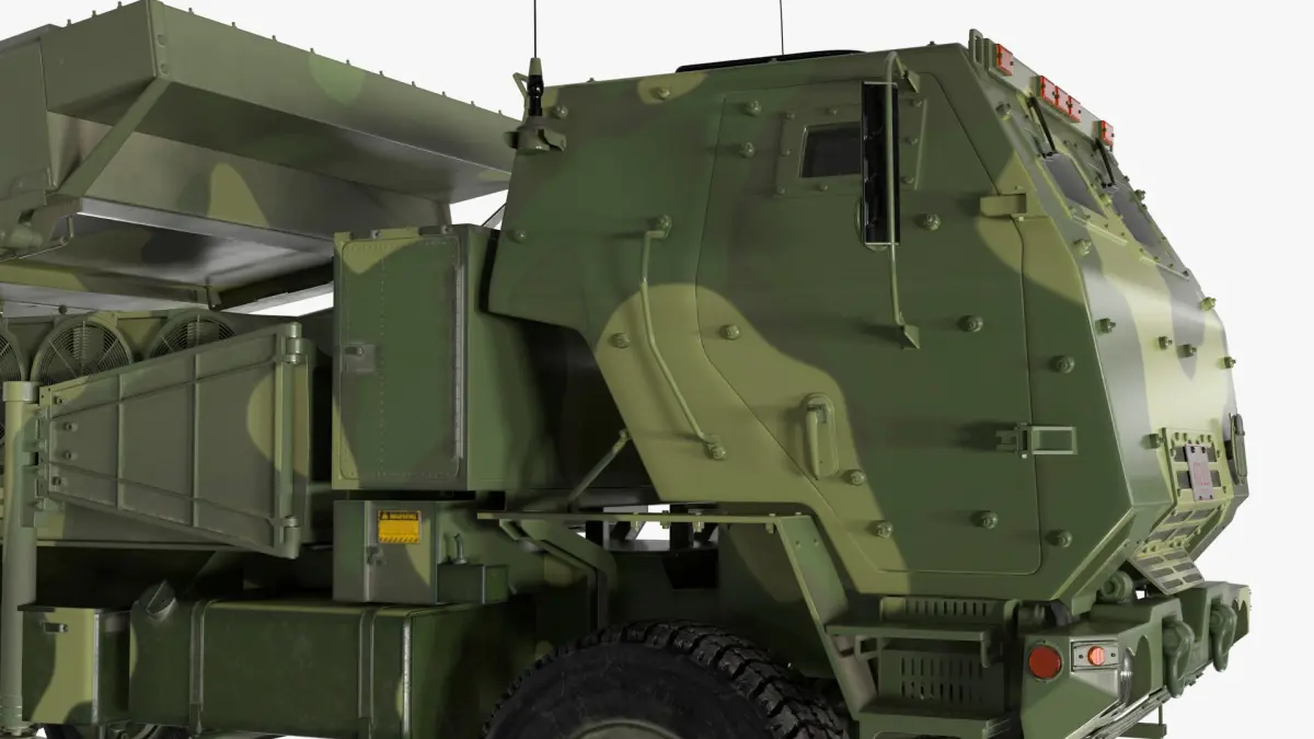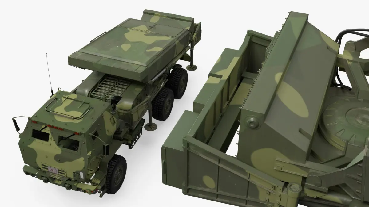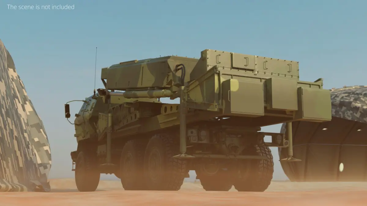 Fire Control Radar Truck Simplified is a 3d model of a mobile rocket launcher system, utilized by military forces for rapid deployment and highly effective precision strikes.