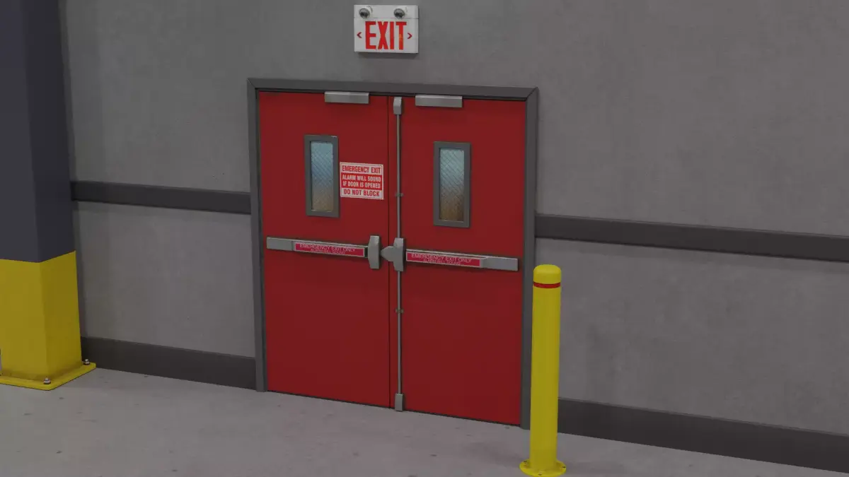 Exit SignDouble Emergency DoorsBollardFire Extinguisher(Pillar and walls in the demo shot are no included)