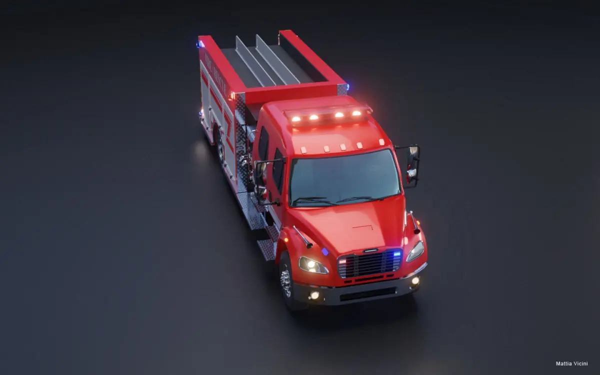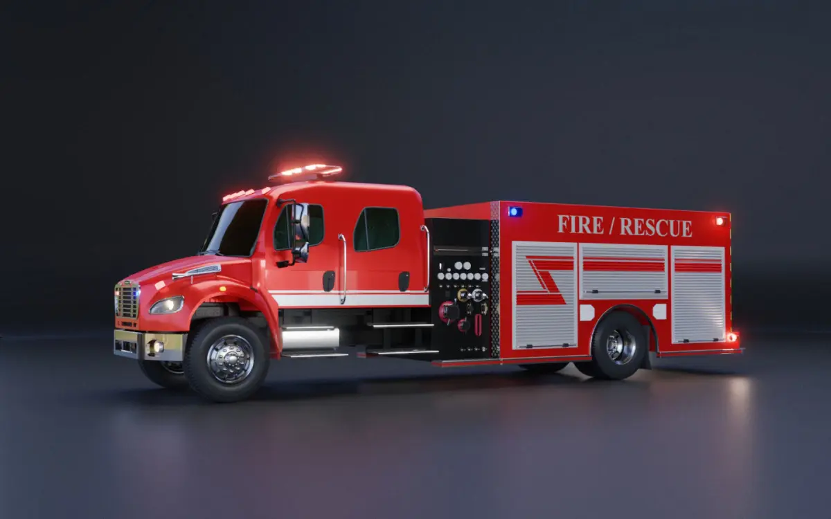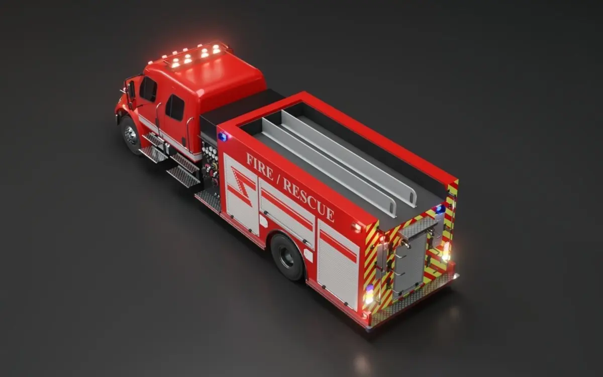 American Fire Engine, generic brand, no logos. Custom vehicle inspired by real truck.Very efficient fire apparatus, with lots of storage space.