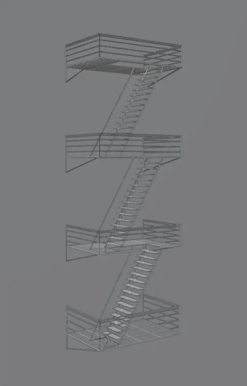 Fire escape staircase made in blender. Textures and materials not included.Contents:CameraFire escape - Base material (principled)Back plane