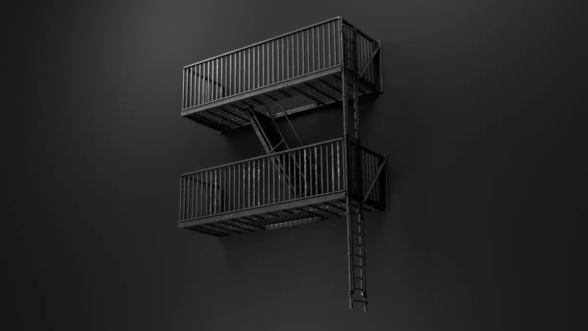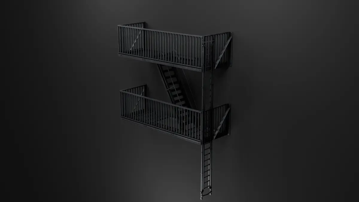 This fire escape stairs model is an essential asset for creating realistic urban scenes, with optimized performance and seamless compatibility with various rendering engines and real-time applications.