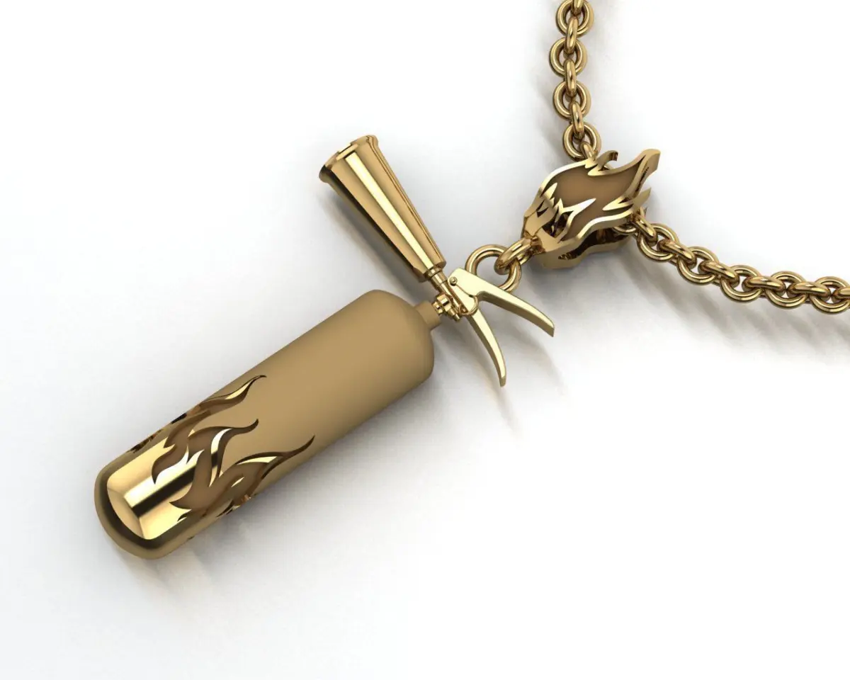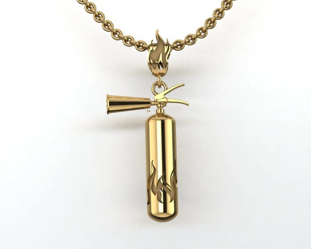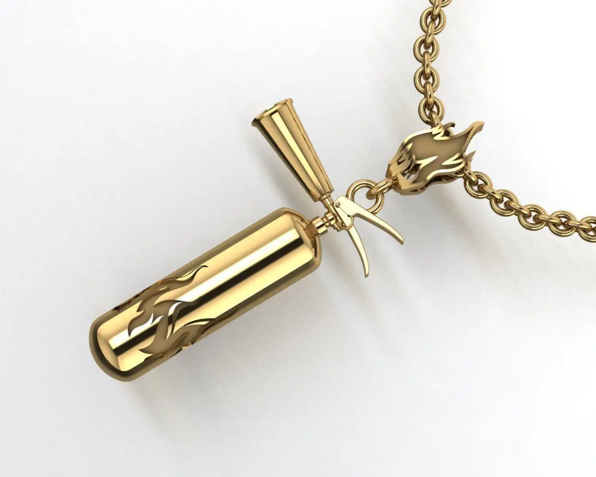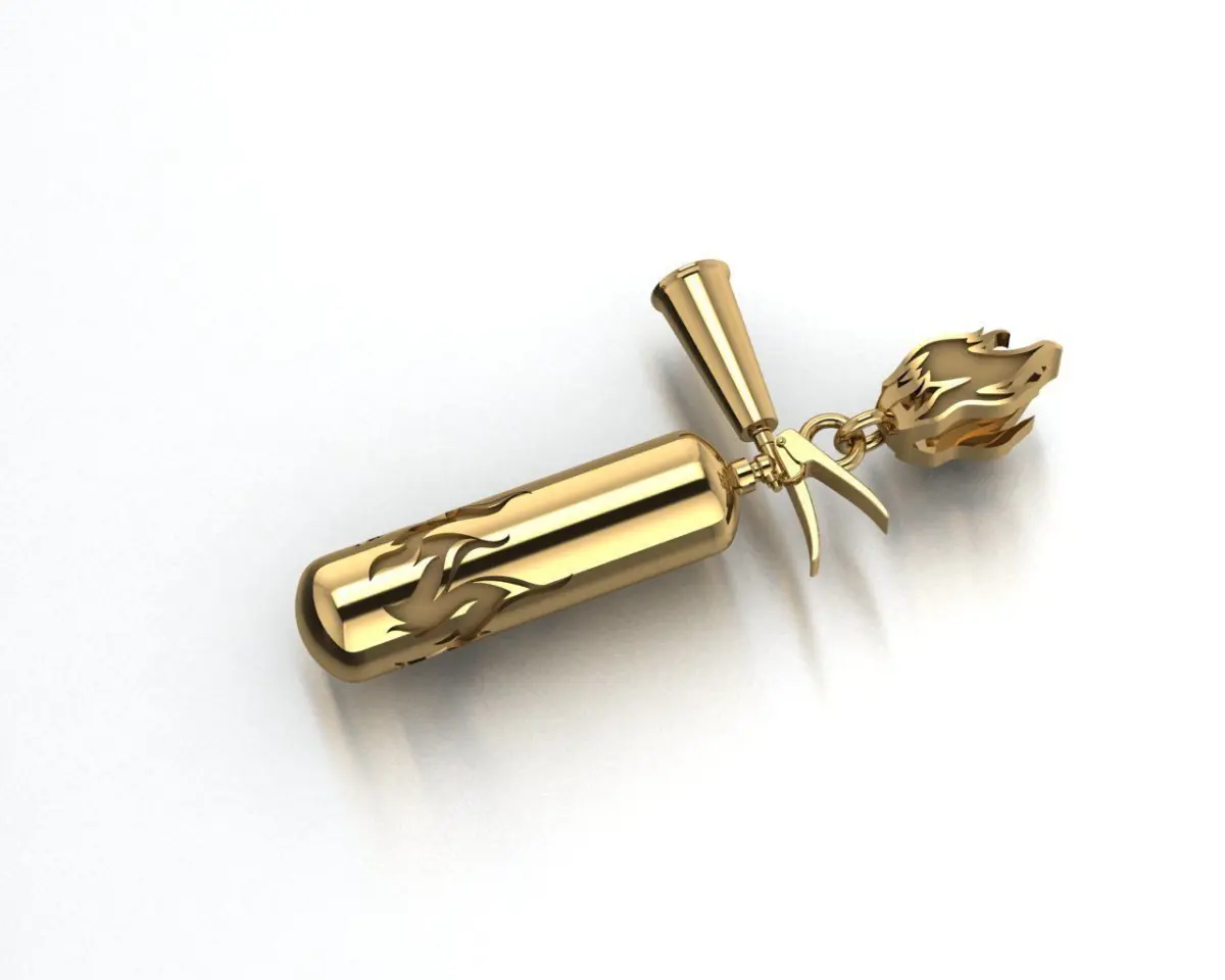 I present to your attention a suspension in the form of a fire extinguisher on fire.