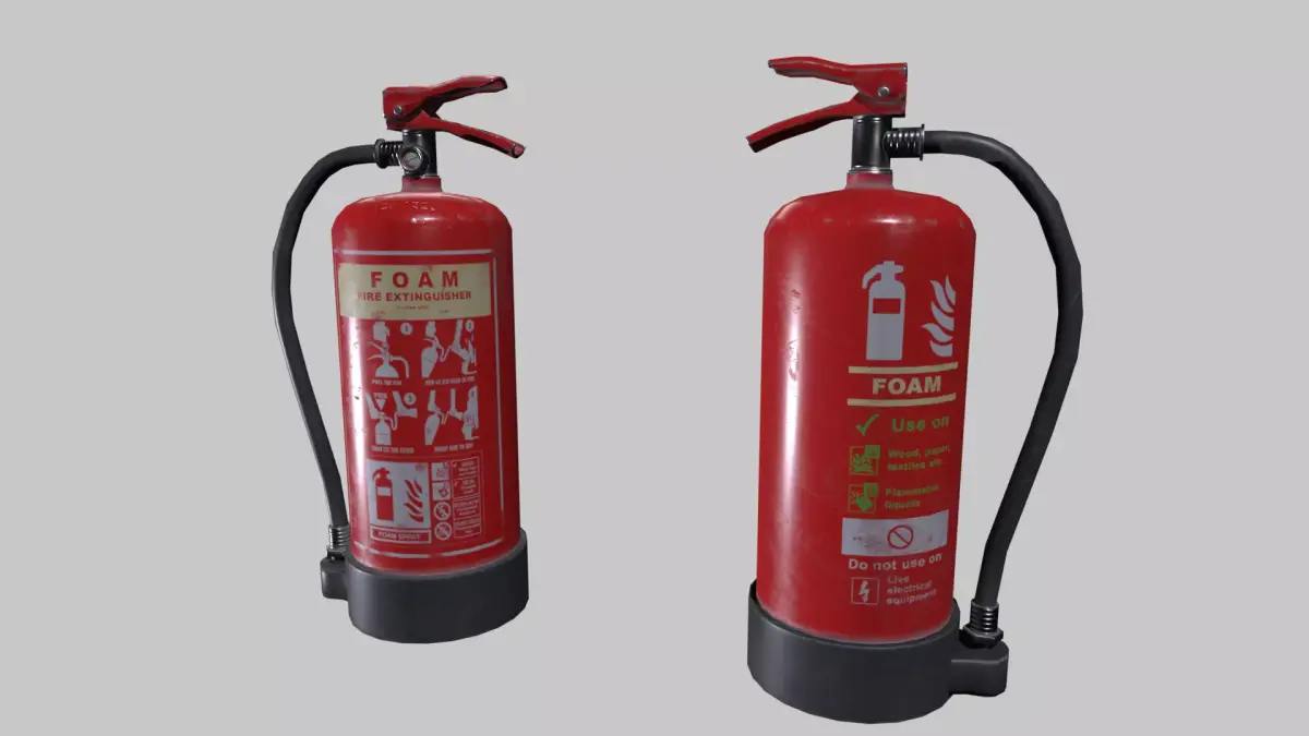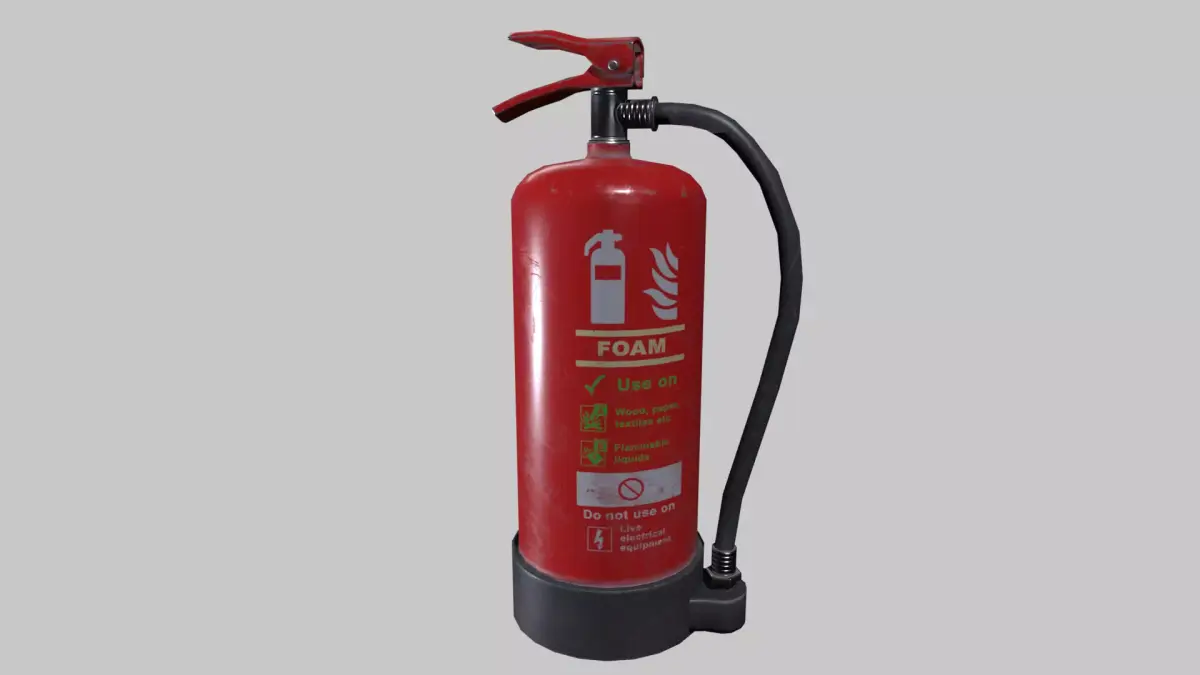 A rigged game ready realistic fire extinguisher model. The hose and the activation lever are rigged but no animations are provided.