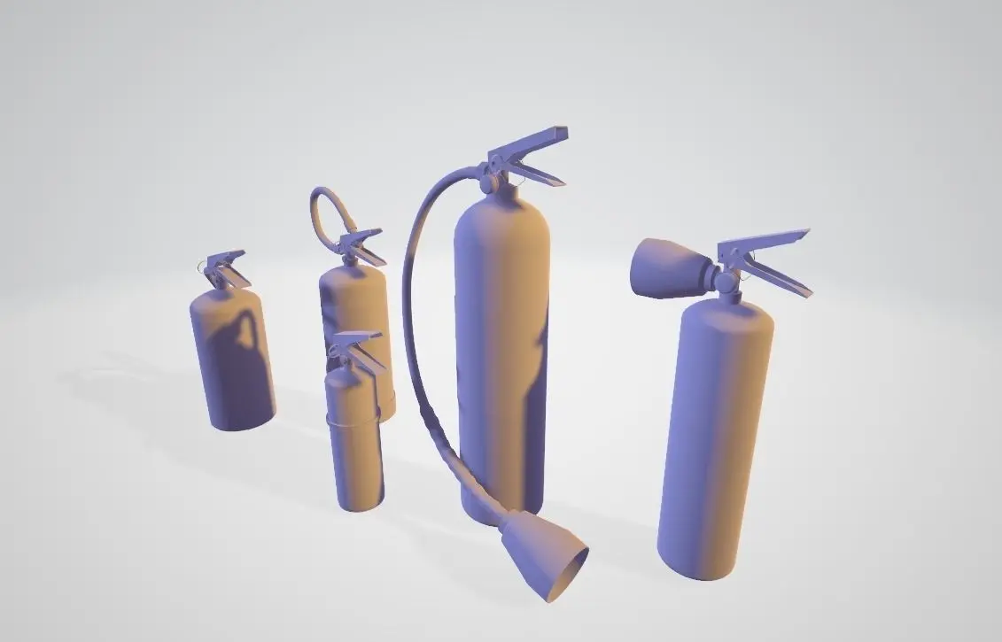5 different Fire Extinguishers, great for interior scenes like buildings, industrial structures, vehicles. This model is suitable for use in broadcast, high-res film close-ups, advertising, archiviz, design visualization etc.