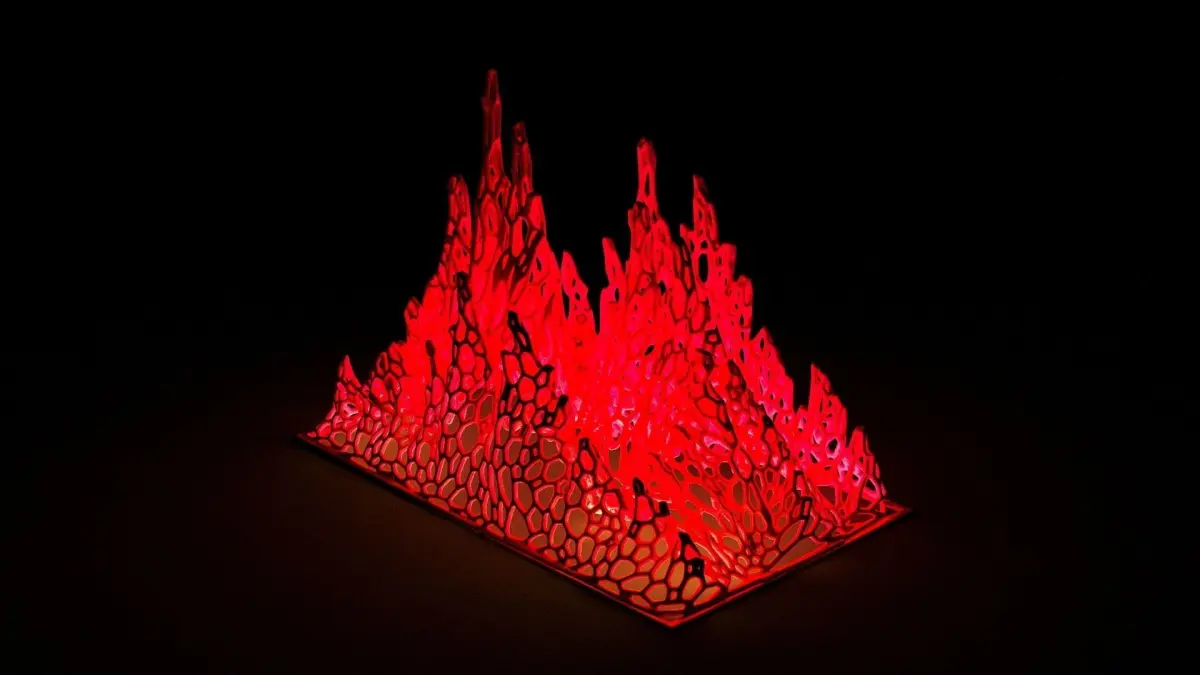 Fire flame voronoi. Tongues of fire, a lovely halloween lamp. The flame is located in a circle. You can put an electric candle in the center and then you get a very stylish lamp. Perfectly fit into the interior of the house or office.