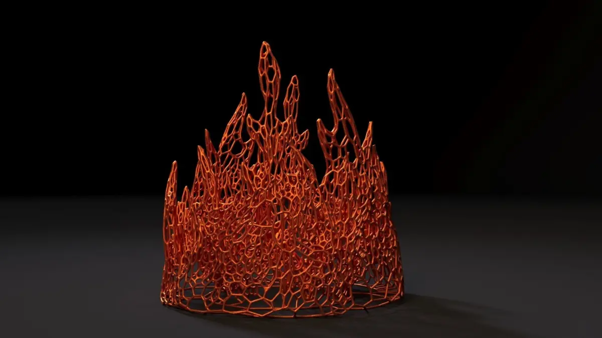 Fire flame voronoi. Tongues of fire, a lovely halloween lamp. The flame is located in a circle. You can put an electric candle in the center and then you get a very stylish lamp. Perfectly fit into the interior of the house or office.