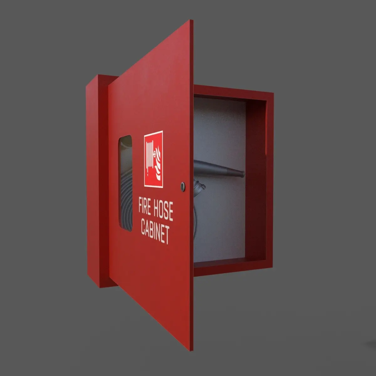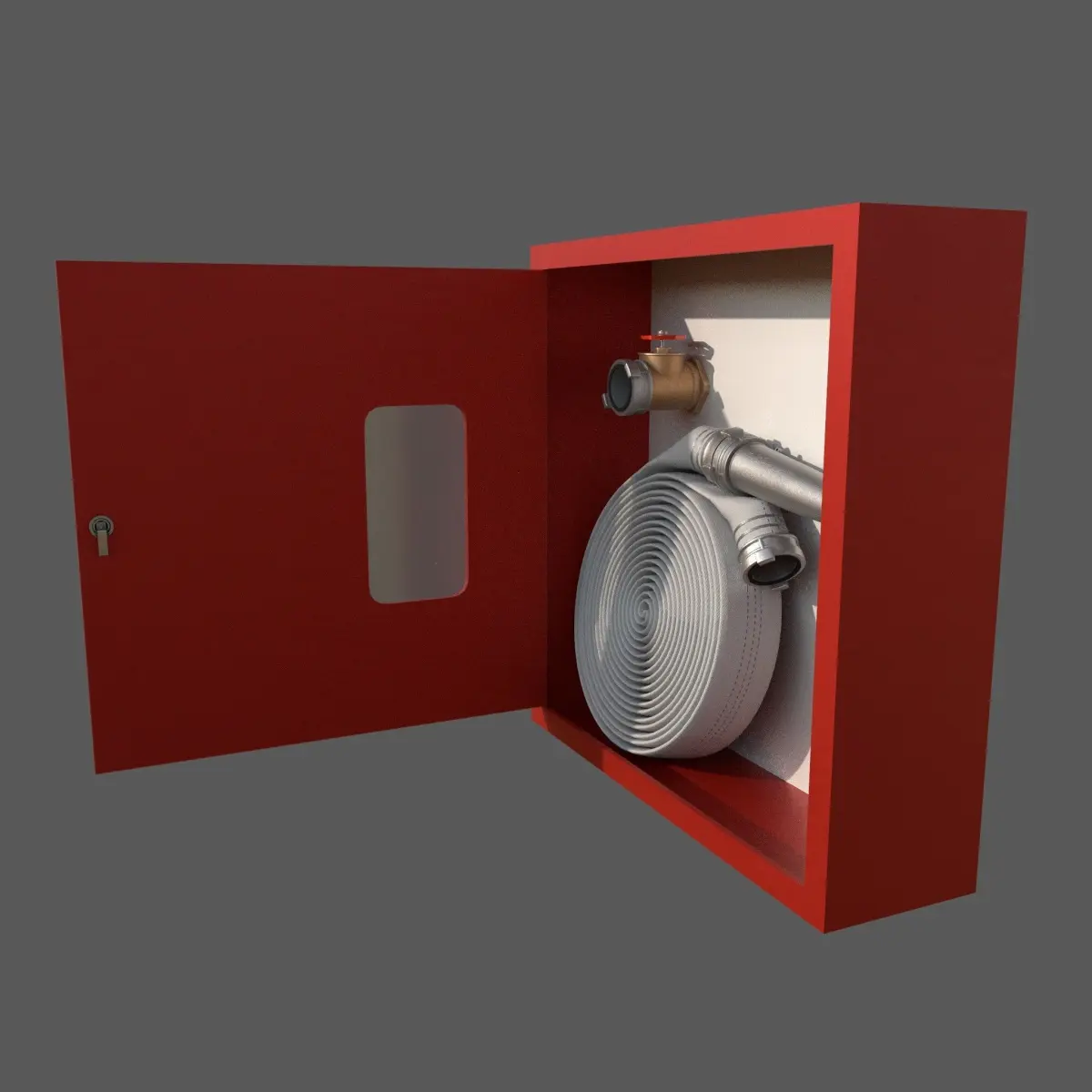 In this product, you receive two variants of scene: fire hose cabinet (with closed door) and open fire hose cabinet (with opened door).
