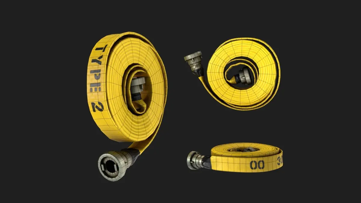Stylized game-ready, AR\VR ready 3D model of firefighter's water hose with PBR textures (Base Color, Normal, Metallic, Roughness, Ambient Occlusion).
