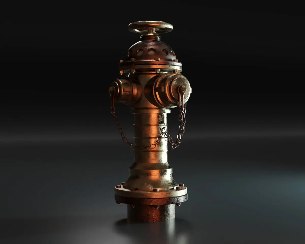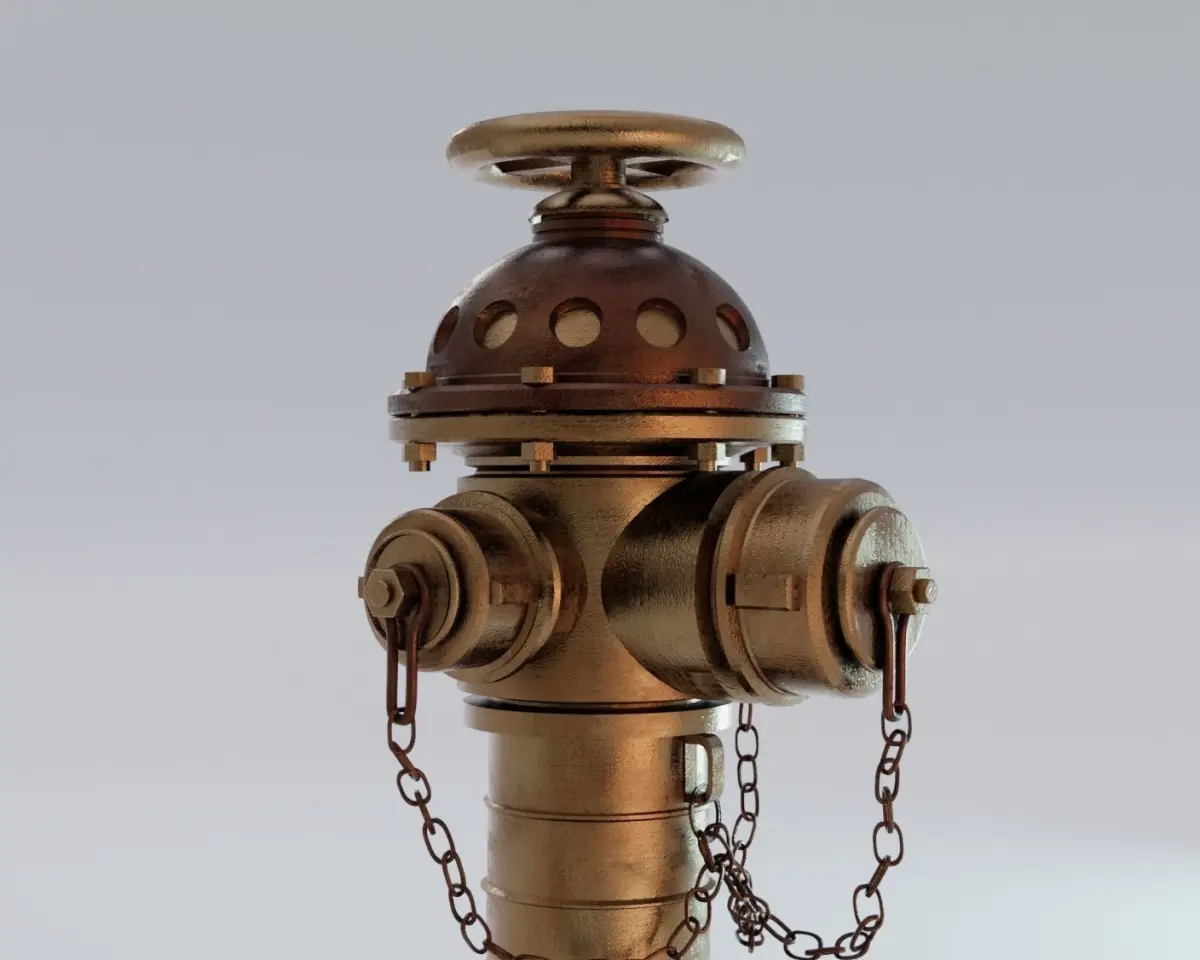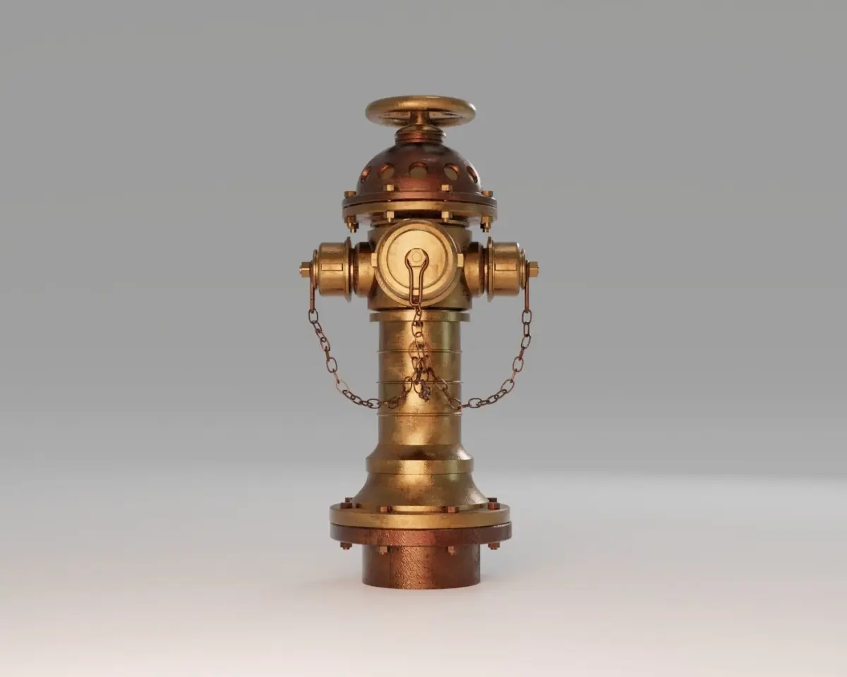 Old bronze fire hydrant modeled in Blender.Steampunk - Victorian age style, original design. Old, heavy, rugged look and unique.Good for exterior scenes (architectural, videogames, 3d visualization, etc)Textures are all seamless and made by me from scratch.