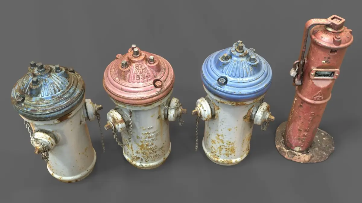 These models are 3D Scans of Firefighting infrastructure. Included are 3 Fire Hydrant Tops, one base, and a indicator post. 8k textures are included. These models are a great reference for modeling, and retopology for video games. Also great as 3D prints. These scans are RAW as is, and may need work to make printable, or useable for other applications.