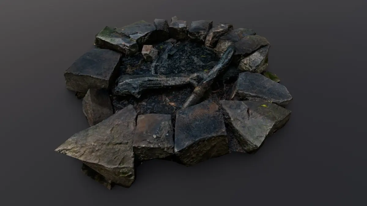Materials:A variety of materials have been applied to accurately define the surface properties of the fire pit. These materials simulate different surface characteristics, such as the metallic sheen of the pit, the rough texture of bricks or stones, and the charred look of the firewood.