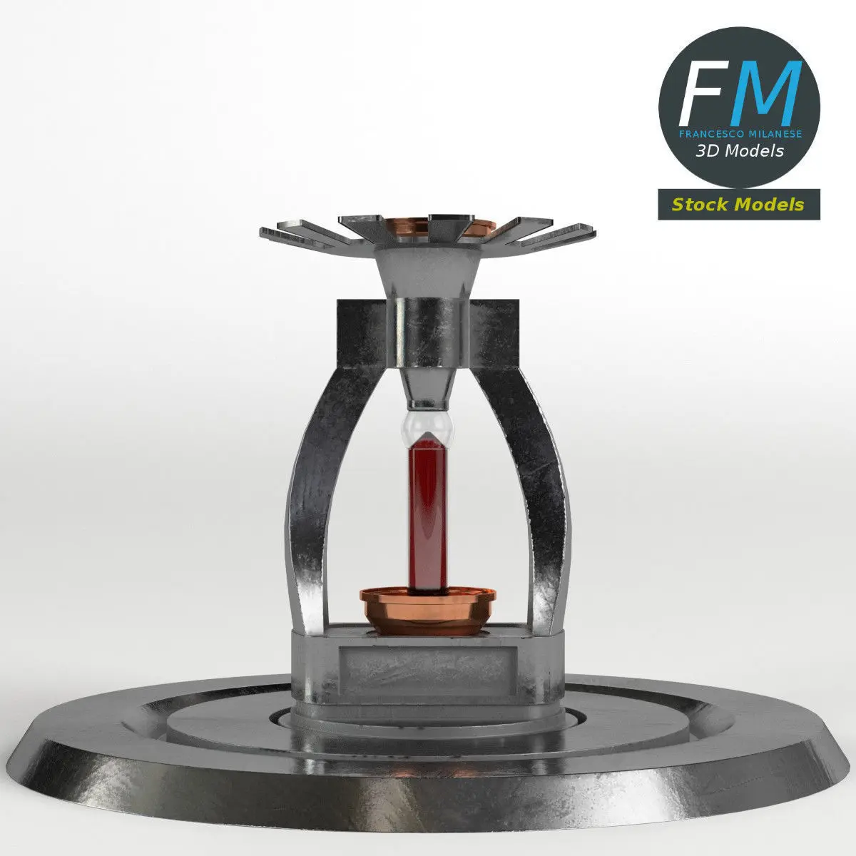 Fire sprinkler head 3D Model. 2 objects (frame, glass with liquid), each one with its own non overlapping UV Layout map, Material and PBR Textures set. Production-ready 3D Model, with PBR materials, textures, non overlapping UV Layout map provided in the package.