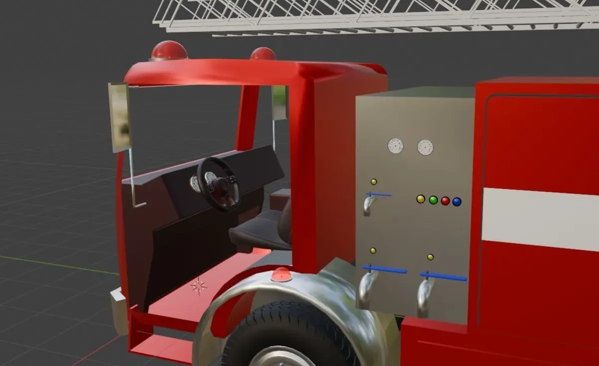 The fire truck is with all the modifires that can be modified based on your need. Please let me know if you need any help for modification to match it to your scene.