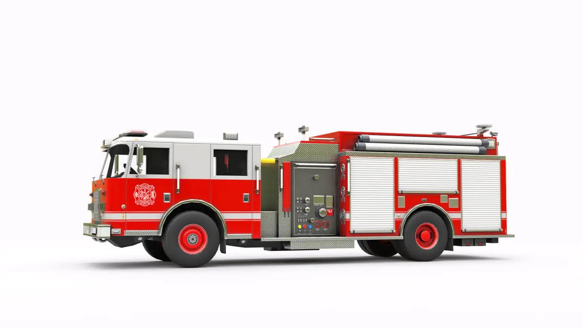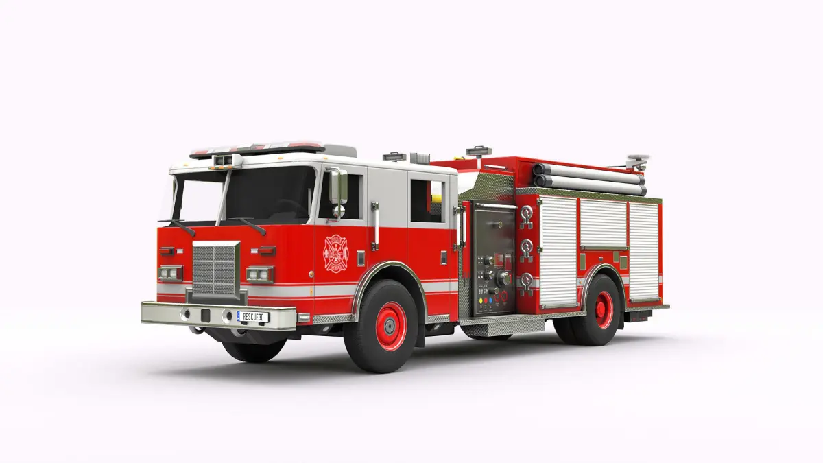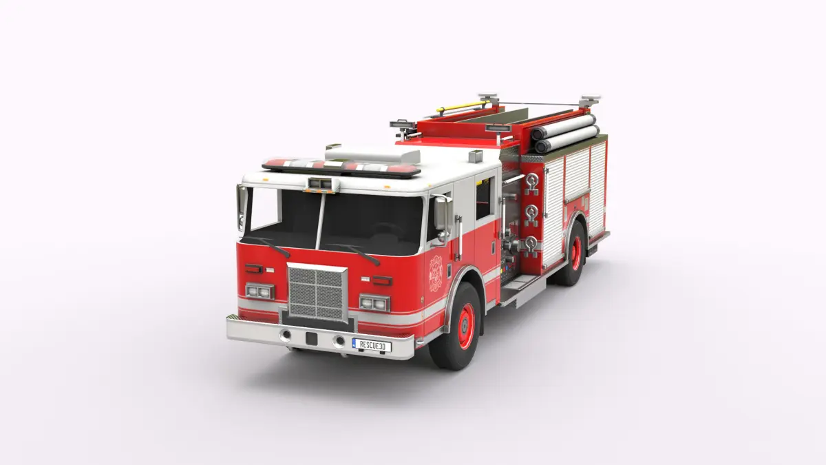 High-quality low-poly PBR 3D model of Fire Truck. The interior part is also modeled and textured but with much less detail.