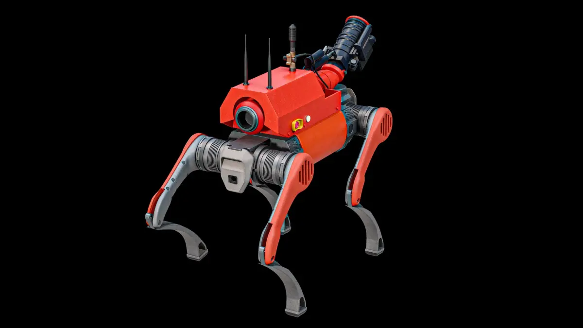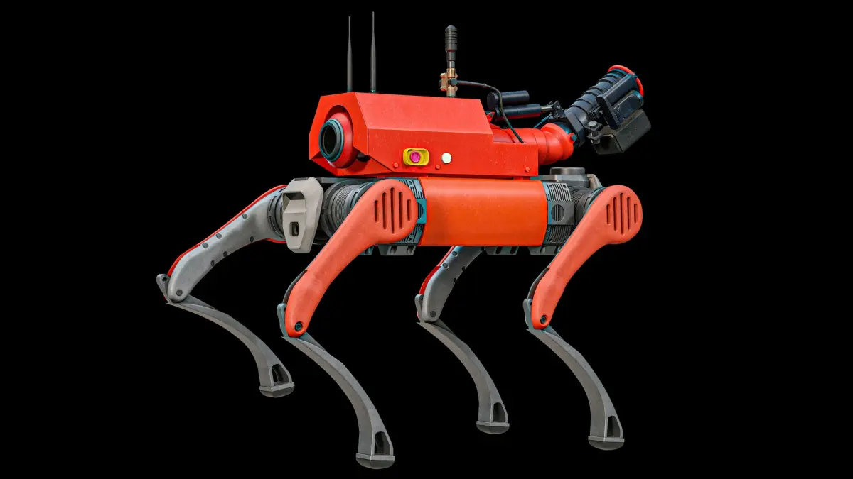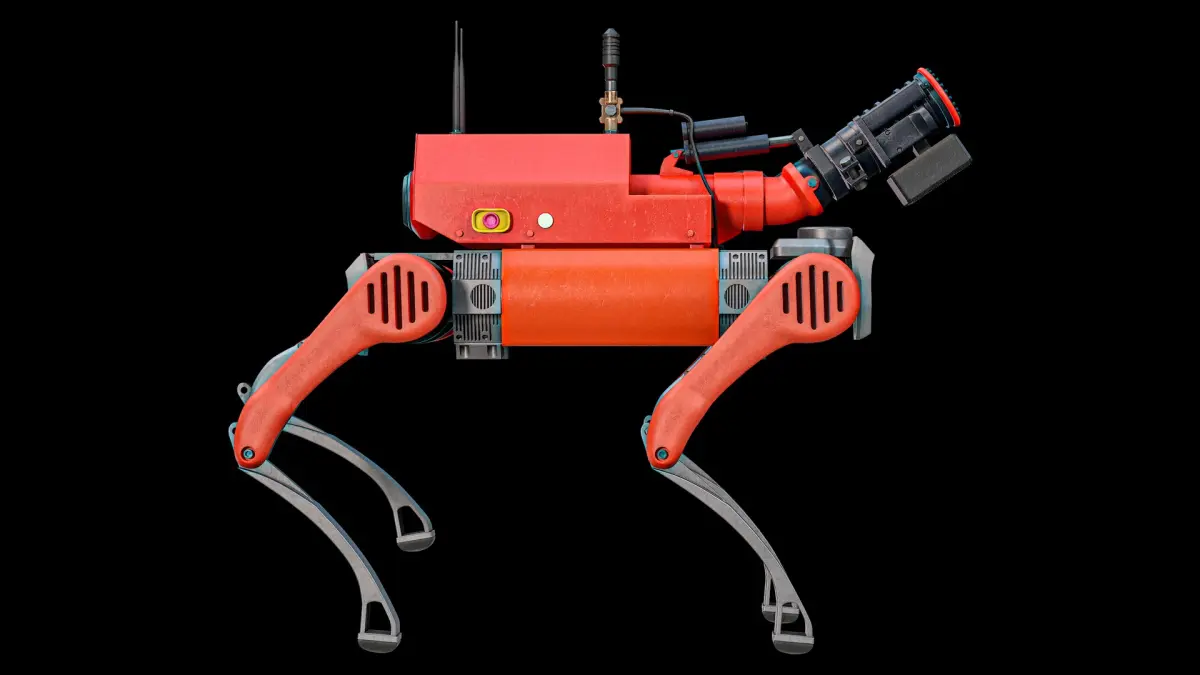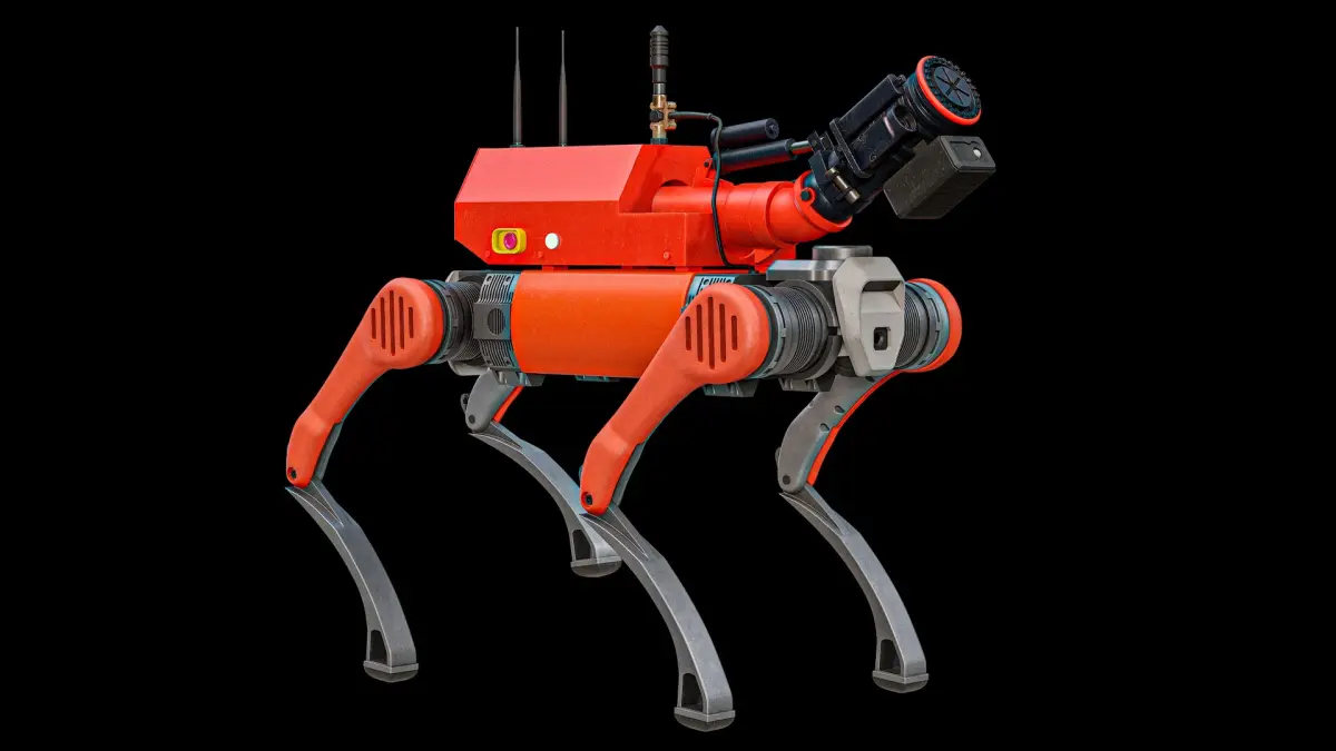 Super realistic high detailed Unitree B2 Firefighter Robot Modification 1 3D Model with high resolution textures and PBR maps.