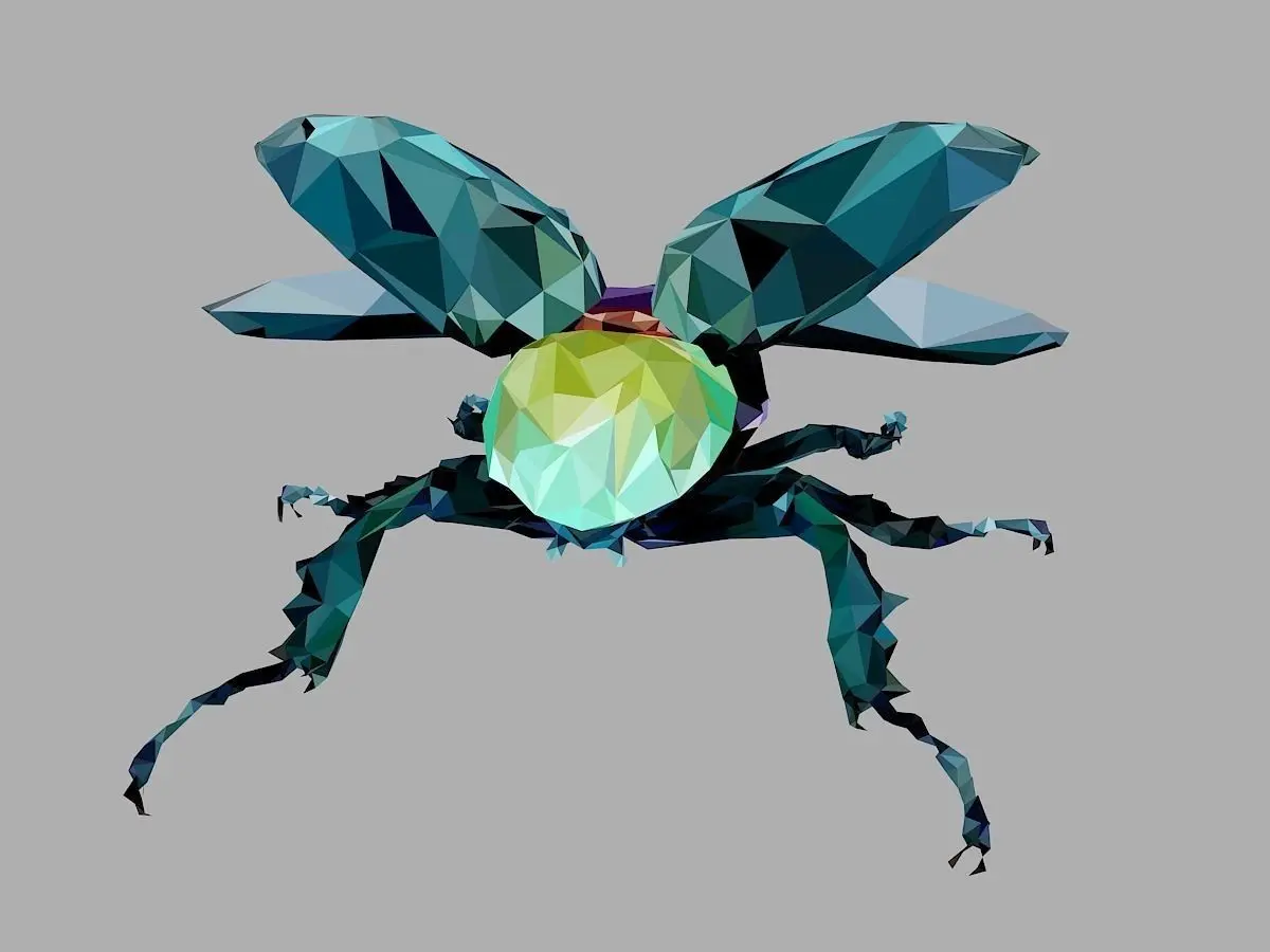 Firefly Rhinoceros Beetle Low Polygon Art Insect Low-poly 3D model