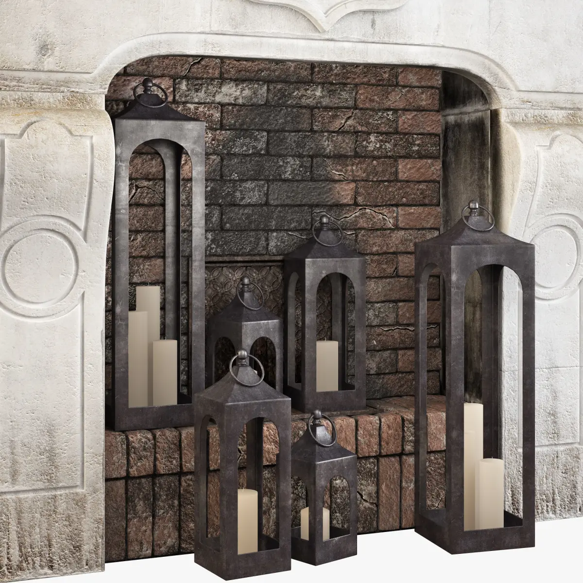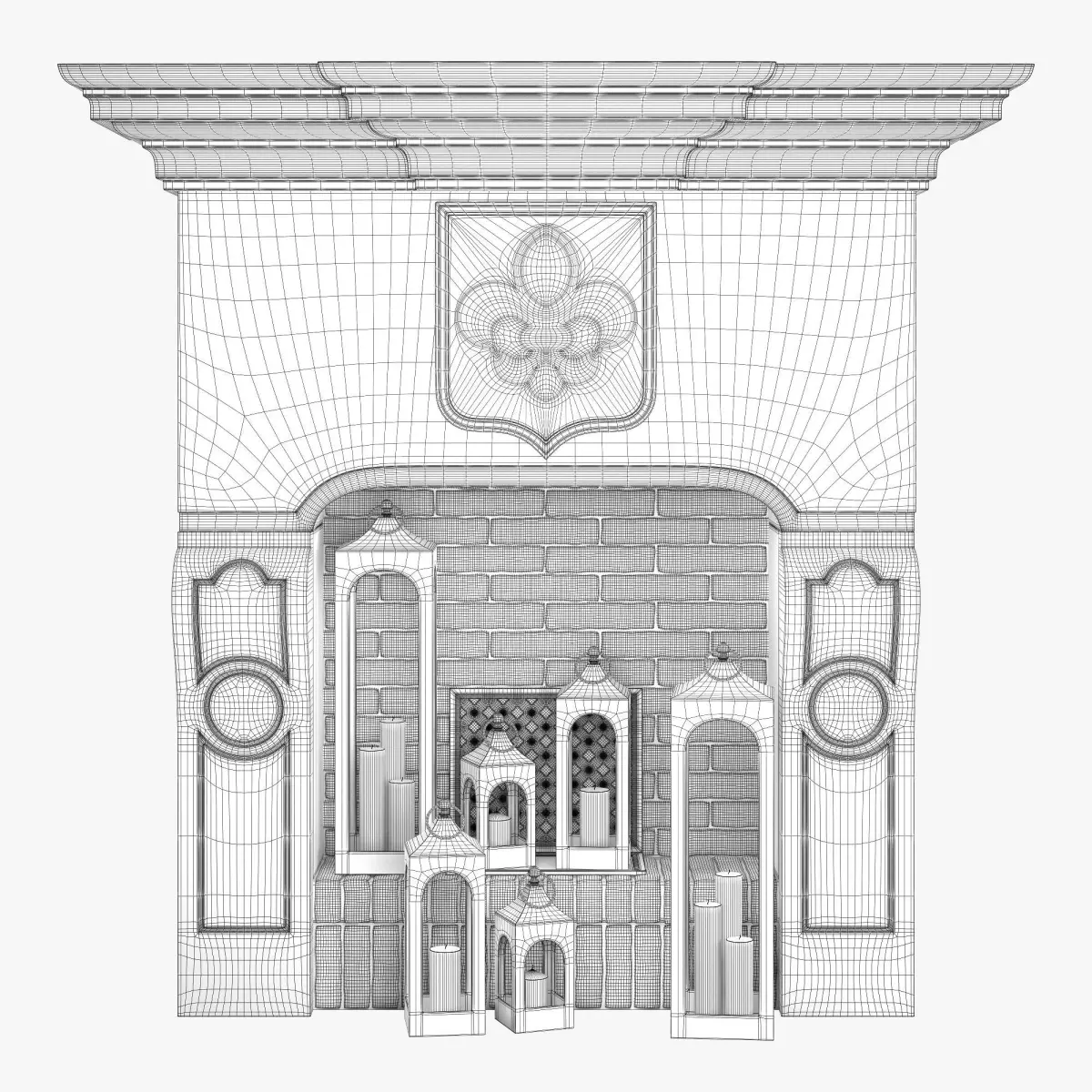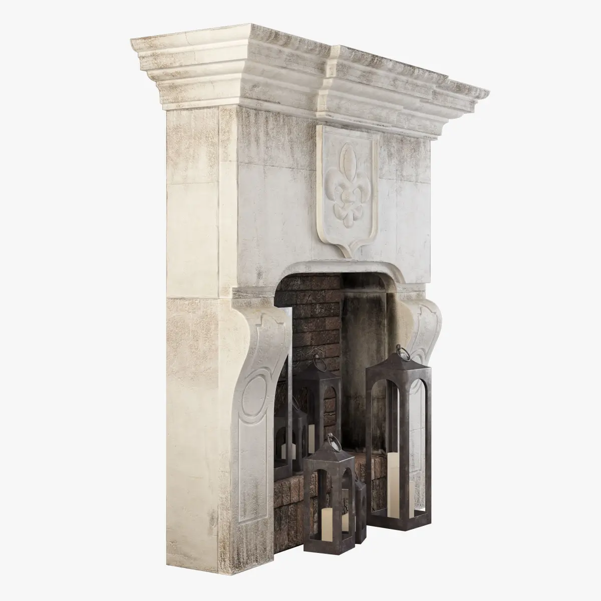 Realistic model fireplace with decor. modeled to real-world scale (mm)