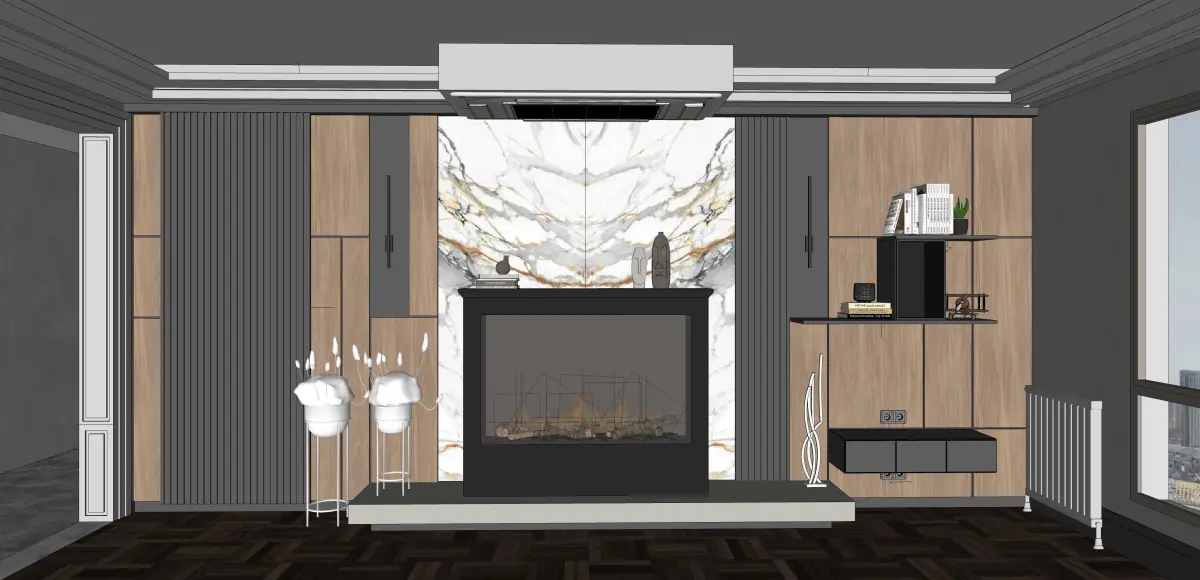 Elevate the ambiance of your home with a touch of warmth and sophistication! Presenting a brand new 3D scene rendered with a fireplace wall ray program, meticulously designed and modeled in SketchUp. This unique scene is crafted to add aesthetic elegance to your living space while maximizing functionality.