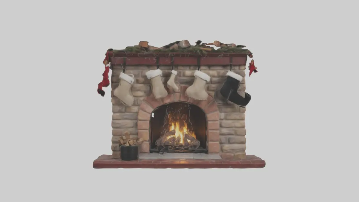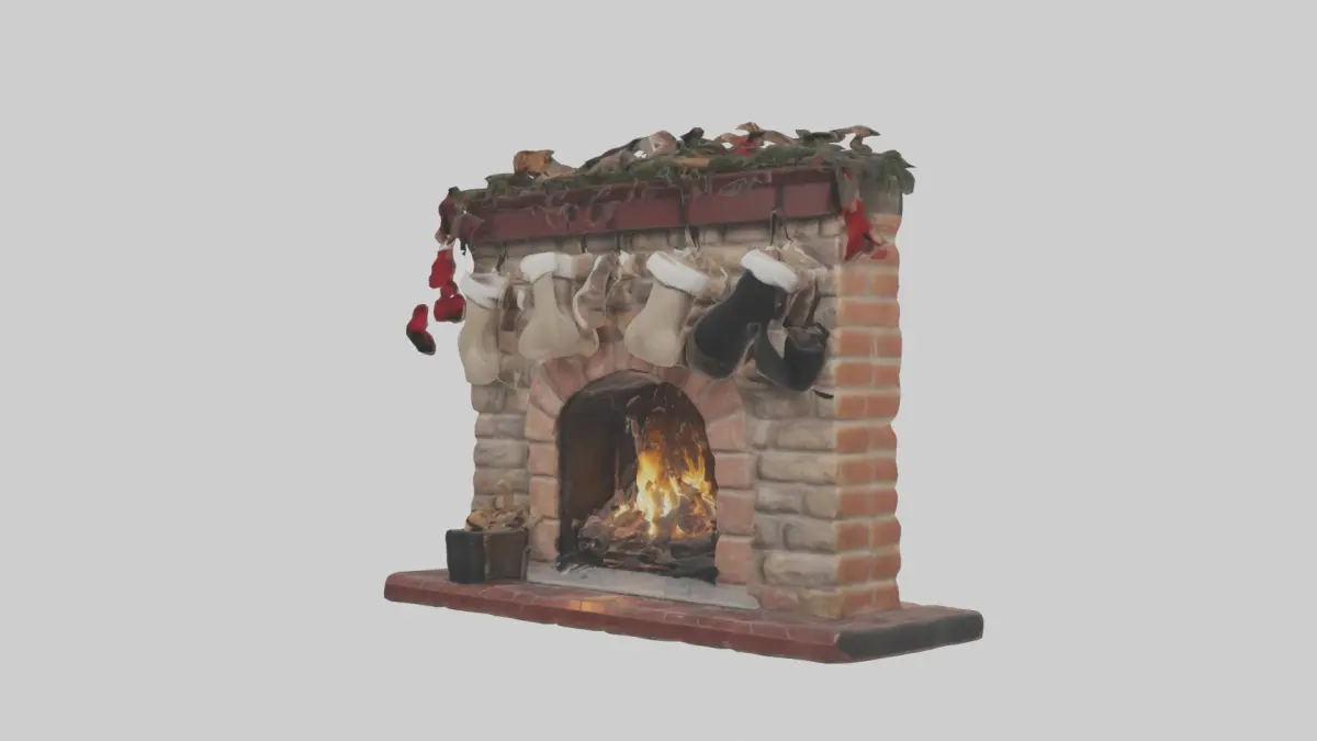 Fireplace, stockings, 3D model, holiday, festive, cozy, winter interior, 3D visualization, FBX, OBJ, STL, GLB, USDZ, Blend