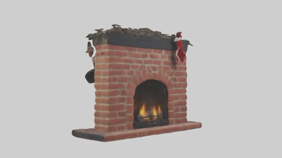 Cheminée, bas, modèle 3D, fête, festif, confortable, intérieur d’hiver, visualisation 3D, FBX, OBJ, STL, GLB, USDZ, Blend