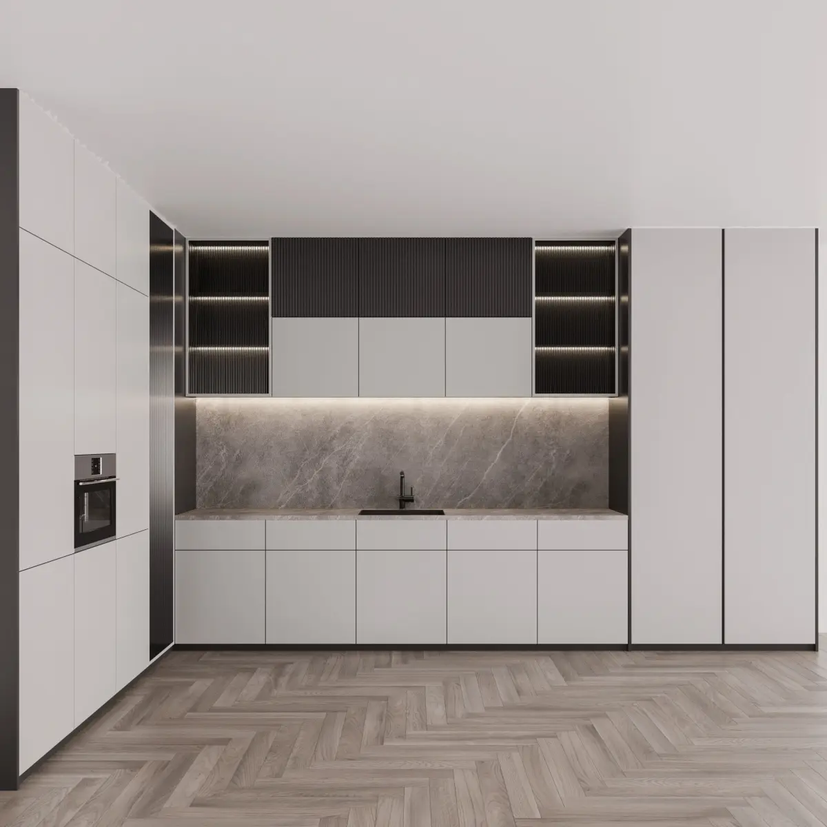 The kitchen is assembled in such a way that you can easily change it to your project.