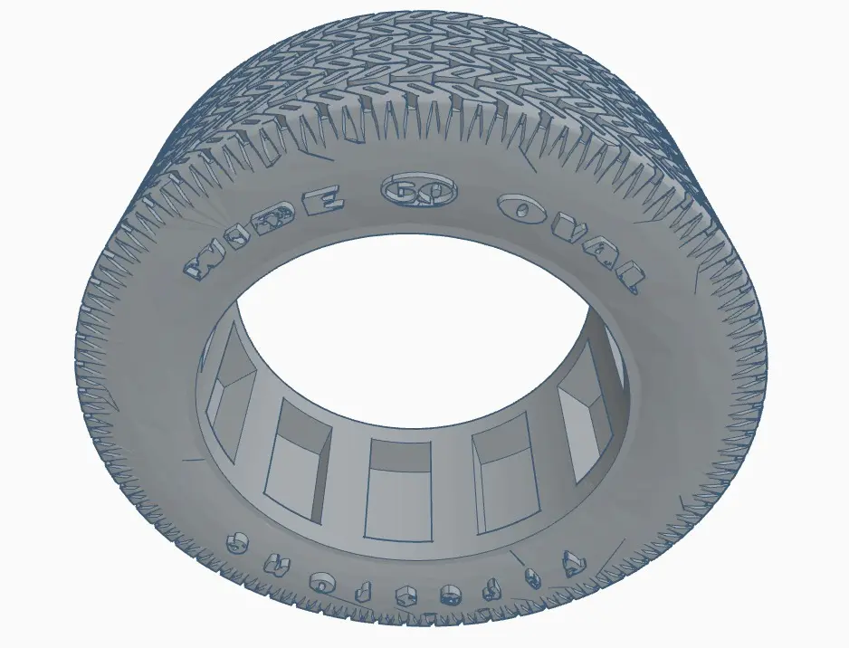 1/25th scale Firestone Wide Ovals, 225x15x60s. This tire has two types of letter imprinted on each side. One with the 60 logo and the side has just the big O