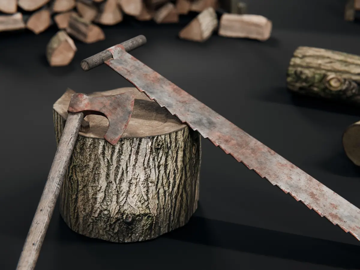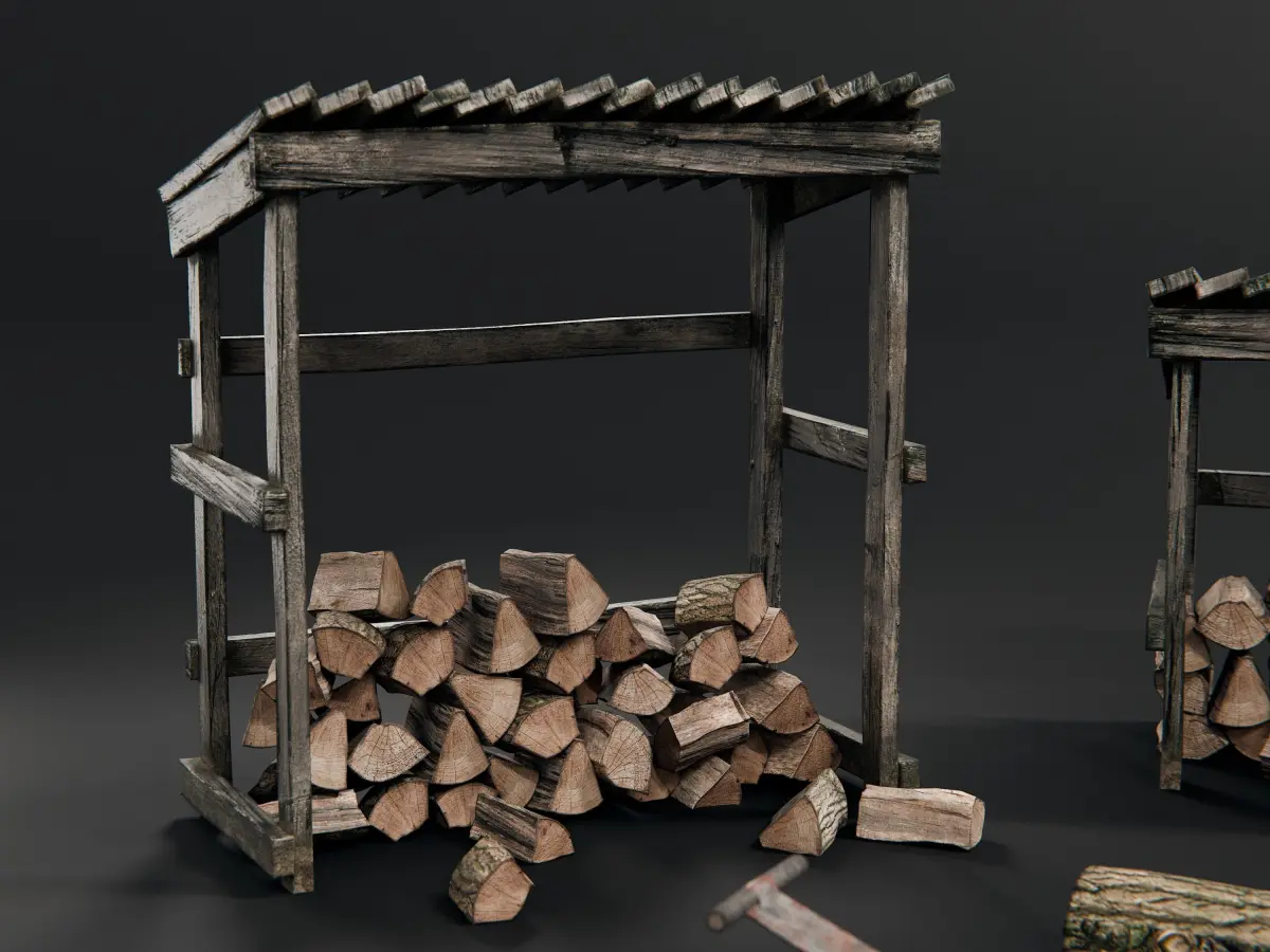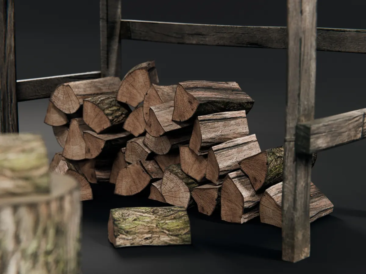 This asset pack includes a bunch of firewood related items. All objects share a baked 8K PBR Material. The material includes: diffuse, roughness, normal, metallic. All Textures are packed into the .blend files ready to use. Manual texture download is provided for the other formats. The individual objects are separated to make rearrangement easy.
