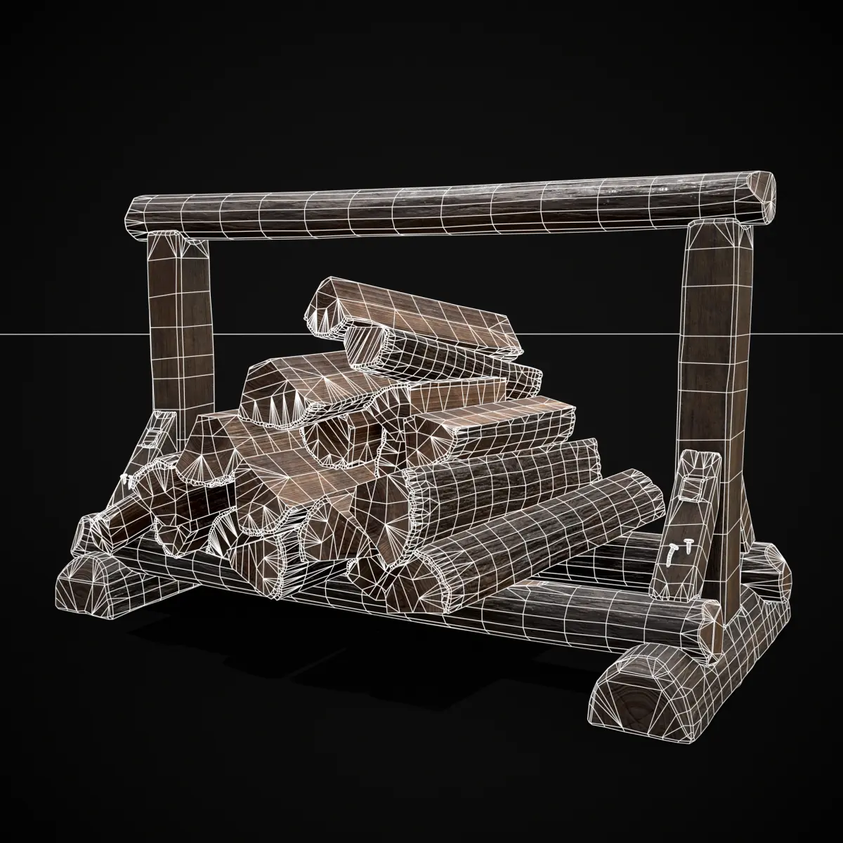 Firewood Log Rack - High Detail, Game Ready 3D Model - Files Include FBX and OBJ. Includes PBR Texture in 4096 x 4096. Maps include : Basecolor, Normal, Roughness, Height, and Metallic. All Preview renders were done Marmoset Toolbag 5. Scaled to real world scale. Customer Service Guaranteed. From the Creators at Get Dead Entertainment. Please like and Rate! Follow us on FaceBook and Instagram to keep updated on all our newest models. Model can be used for any purpose except resale or redistribution of the asset if not used in a game, commercial or media project.