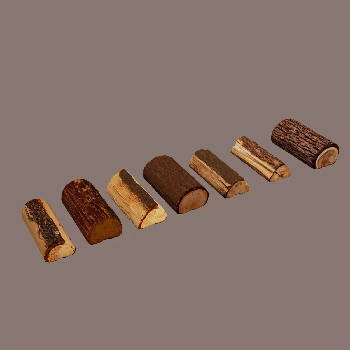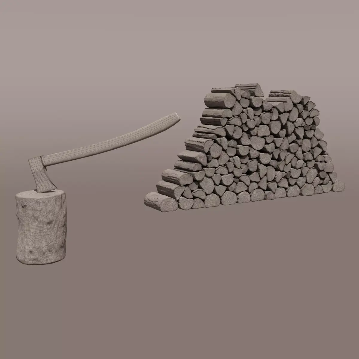 Chopped firewood, with a chopping log and an axe. A single wood piece contains about 8000 polys for realism, but not too much to slow your video or game down. Covered with High poly levels. The file contains 7 different variations of real wood, and a log and axe. UVW mapped, textured, ready for use. made for corona renderer, but they has physical material so can be used with different renderer or software too.