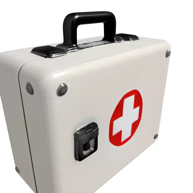 This highly detailed 3D model represents a classic first aid kit, meticulously designed with a clean white finish, a prominent red cross symbol, polished chrome latches, a sturdy handle, and protective corner elements. The model offers excellent visual fidelity suitable for a wide range of applications, from medical simulations and educational content to realistic architectural visualizations of hospitals, clinics, homes, or offices. It serves as an essential prop for immersive game environments, augmented reality (AR) and virtual reality (VR) experiences, and various digital art projects requiring a touch of realism. The asset is built with clean, optimized topology, ensuring smooth performance in real-time applications while maintaining sufficient detail for high-quality static renderings and close-up shots. It is fully UV unwrapped and includes high-quality PBR textures for realistic material representation, including glossy plastic and polished metal. The model is compatible with major 3D software and rendering engines and is provided in common file formats such as GLB, OBJ, STL, ABC, DAE, FBX, USD, and PLY, making it versatile for any professional workflow. Its robust construction and accurate detailing also make it suitable for 3D printing applications, allowing for physical representation.