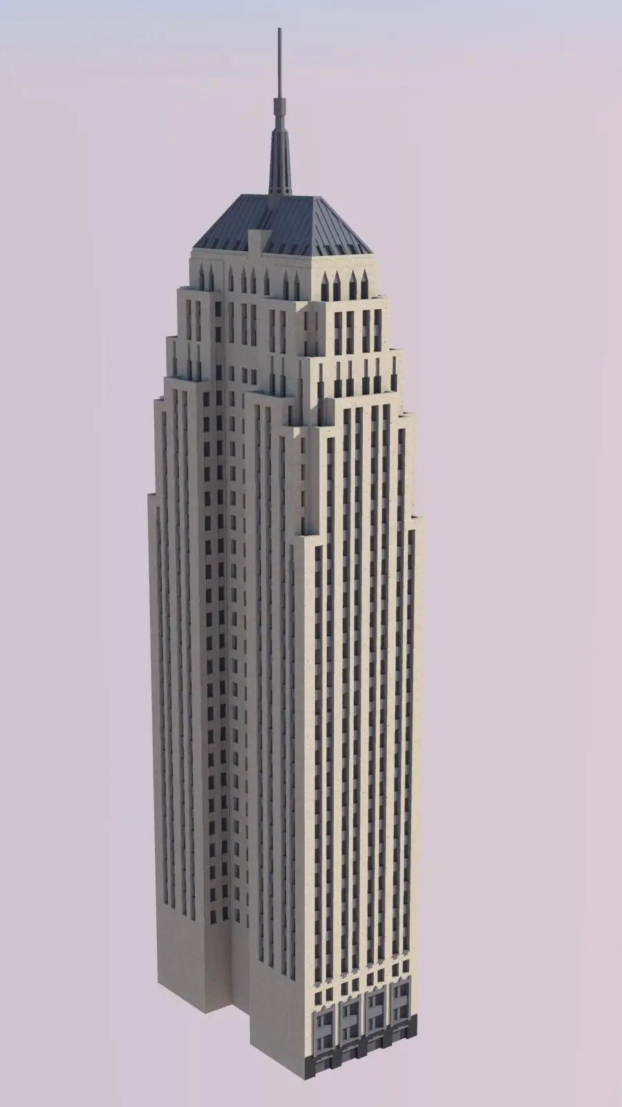 The First National Center, formerly known as the First National Bank Building, is a 493ft (150m) tall skyscraper in Oklahoma City, Oklahoma. The building's antenna rises further to a total height of 553ft (169m). The building was designed by the Weary & Alford Company. Completed in 1931, the skyscraper stood as Oklahoma's tallest building for 40 years. Today, the building remains one of Oklahoma's most iconic buildings.While the exterior of the building has been altered in the years since its original construction, this model is based on the building's appearance upon its completion.
