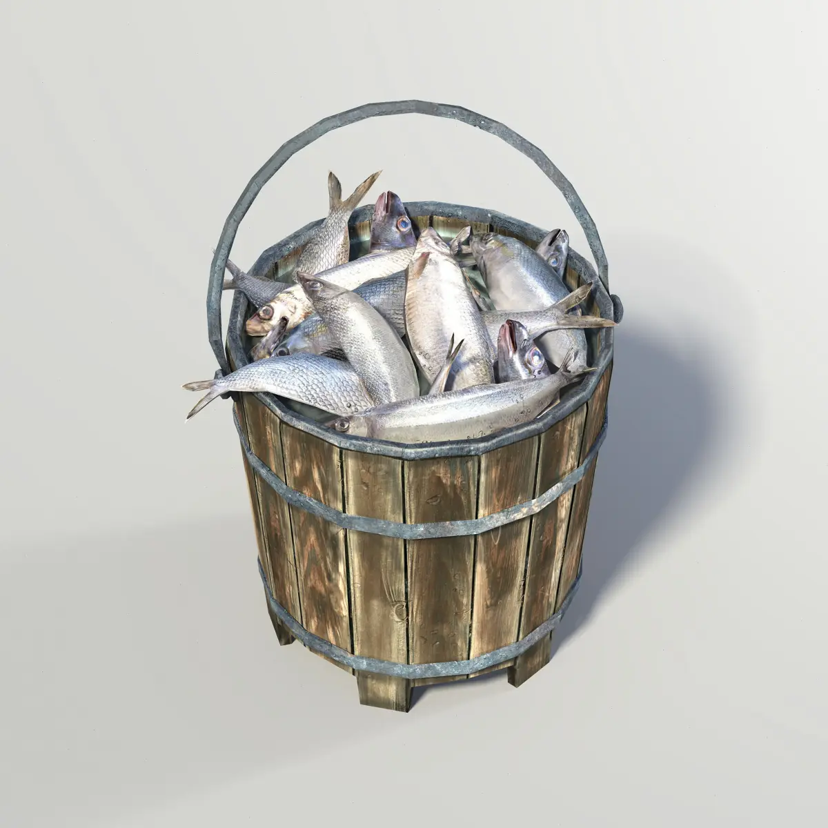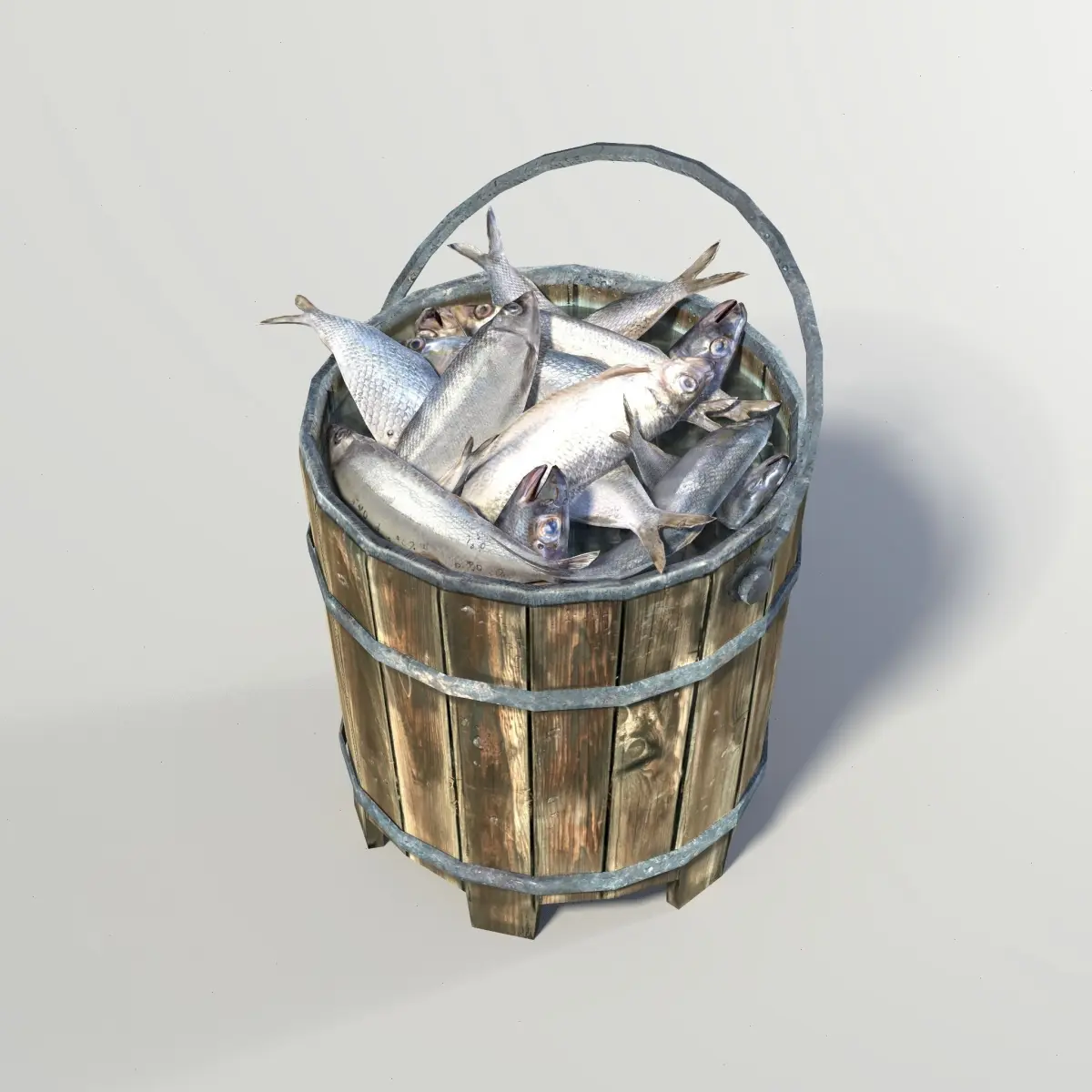 Bucket of fish. Polygons: 3284. Format: Maya, Obj. Textures: 4K DM, SM, NM.
