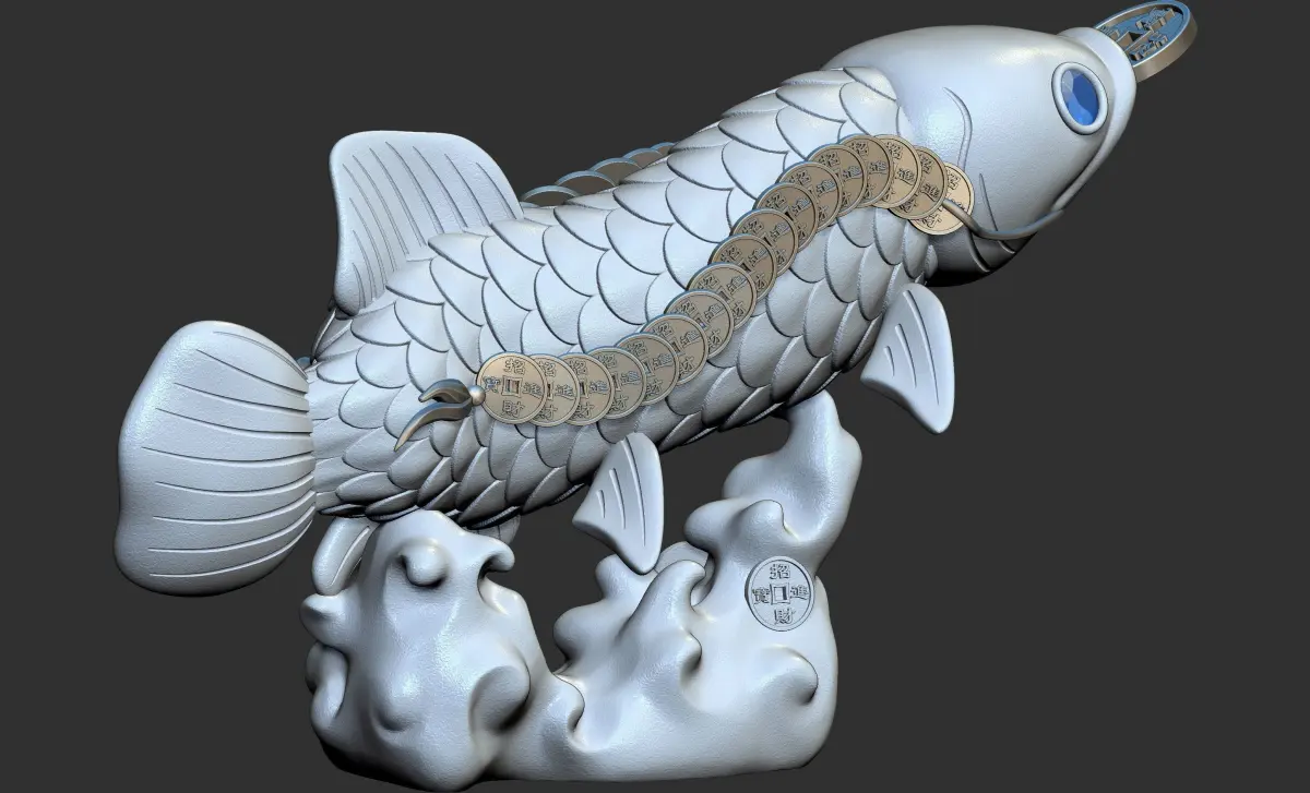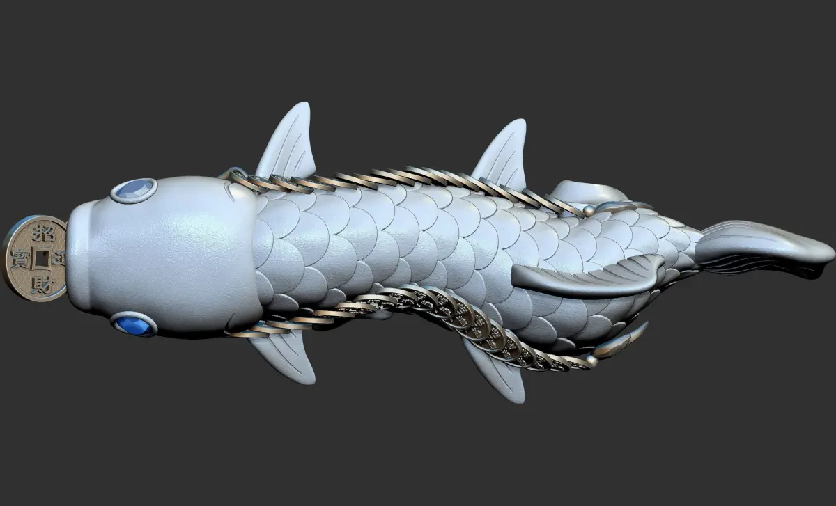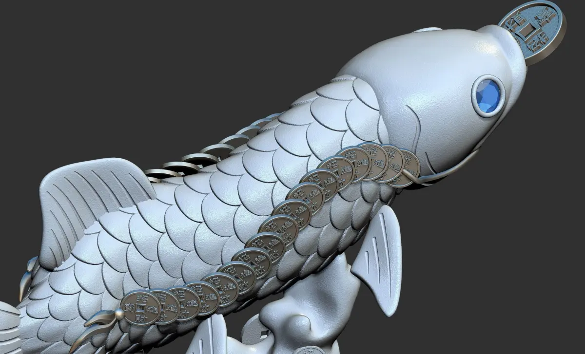 In China, at the annual Chinese New Year's Eve dinner, we will eat fish, which means more than enough every year. The inspiration of this work is also this. The main part is a fish with a string of copper coins in its mouth, which also has a very good meaning for our country. We provide obj, stl, fbx and ztl file formats, hope you like them.
