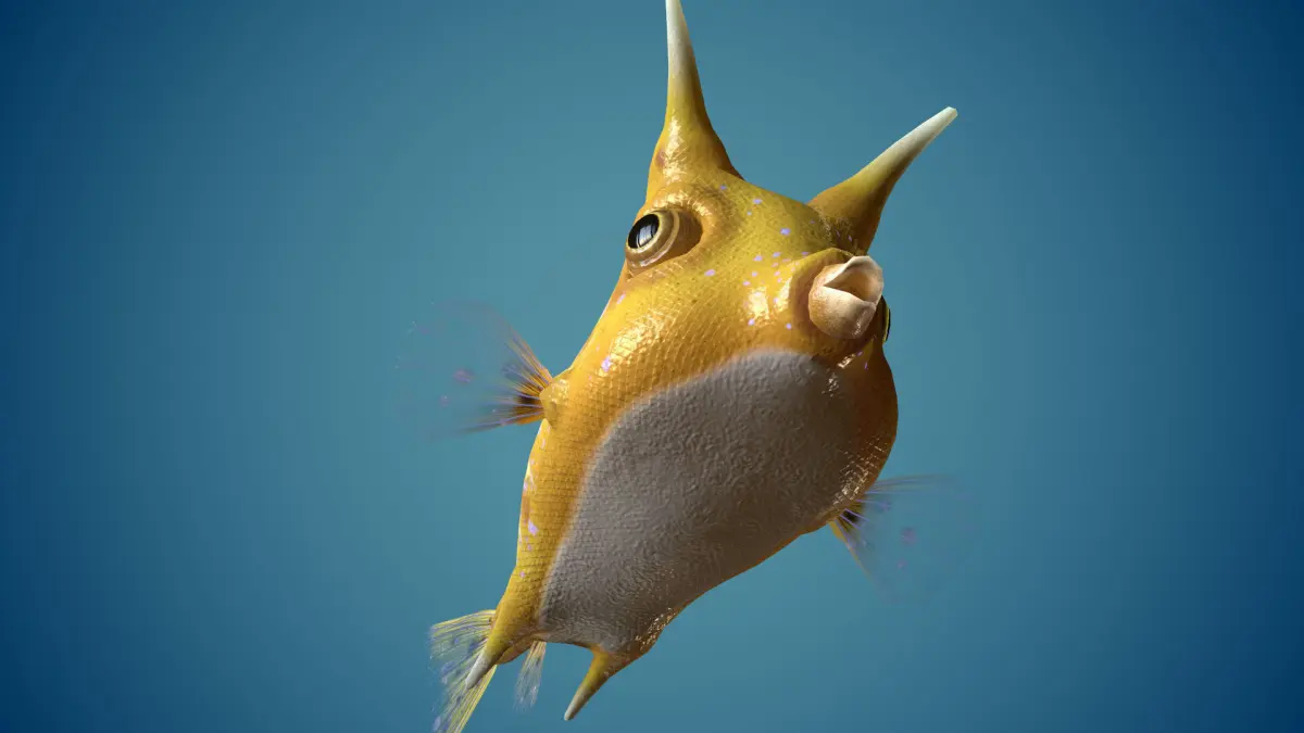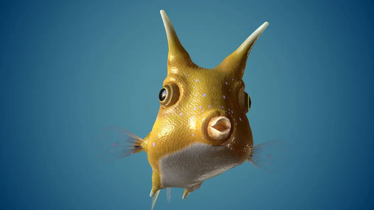Fish Lactoria cornuta 3D model. Finished game model with PBR Textures.
