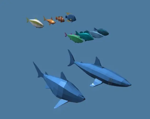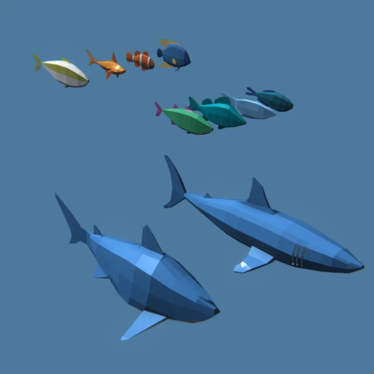 Fish Pack contains 8 Fish and 2 Shark models. Each model is a FBX/OBJ file containing no more than 200 and the models can be animated and easily edited. They are all maped to a single texture called fish_color.Since they are Low Poly it's Game Ready to use in any game engine of your preference.