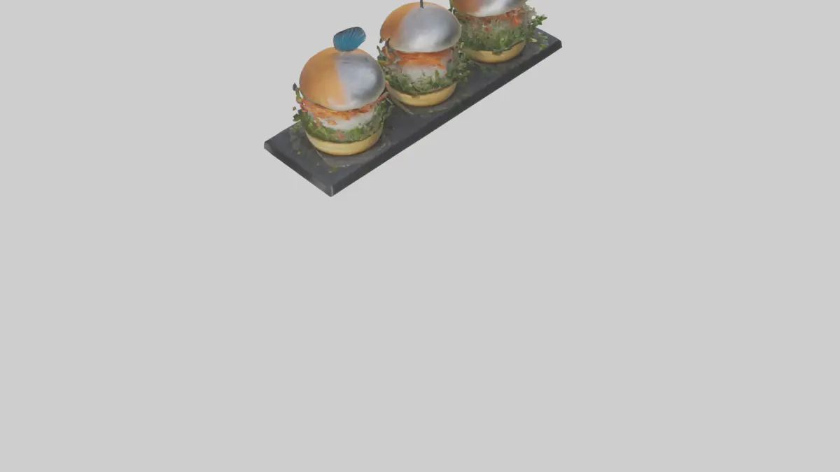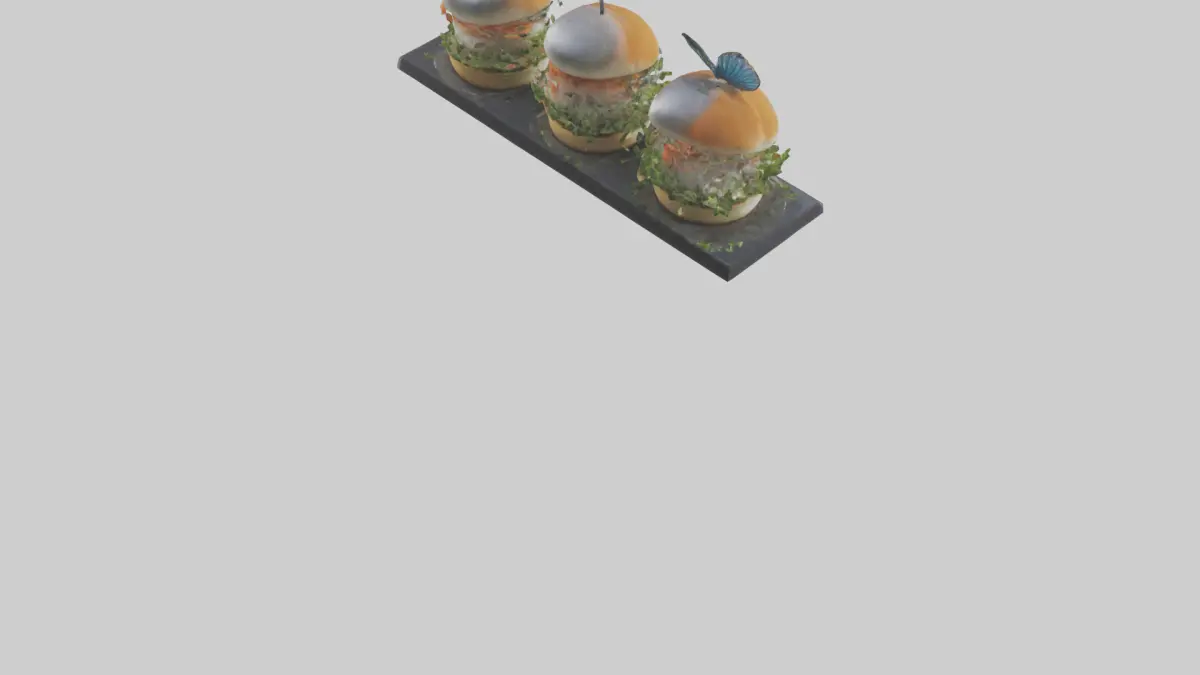 Keywords: Fish slider, slider, mini burger, 3D model, food, cuisine, delicious, restaurant, menu, fish, cheese, sauce, hamburger, snack, FBX, OBJ, STL, GLB, USDZ, BLEND.