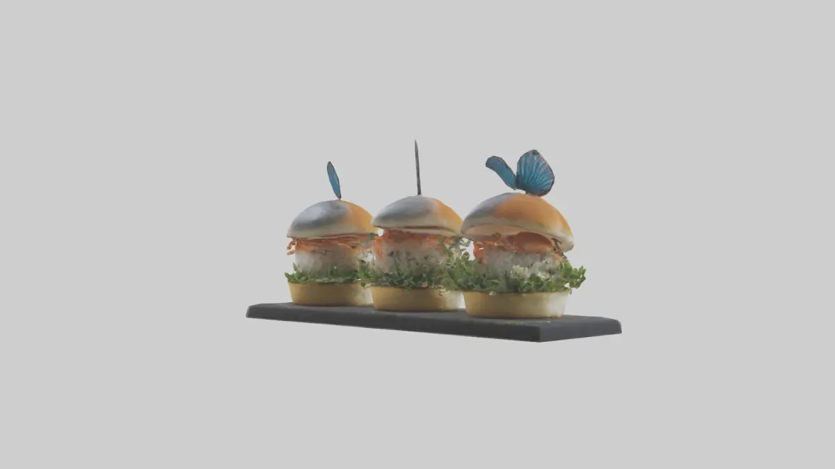 Anahtar Kelimeler: Balık slider, slider, mini burger, 3D model, yemek, gıda, mutfak, lezzetli, restoran, menü, balık, peynir, sos, hamburger, atıştırmalık, FBX, OBJ, STL, GLB, USDZ, BLEND.