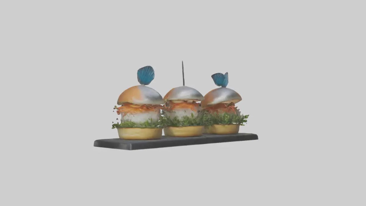 Schlüsselwörter: Fisch-Slider, Slider, Mini-Burger, 3D-Modell, Essen, Küche, lecker, Restaurant, Menü, Fisch, Käse, Soße, Hamburger, Snack, FBX, OBJ, STL, GLB, USDZ, BLEND.