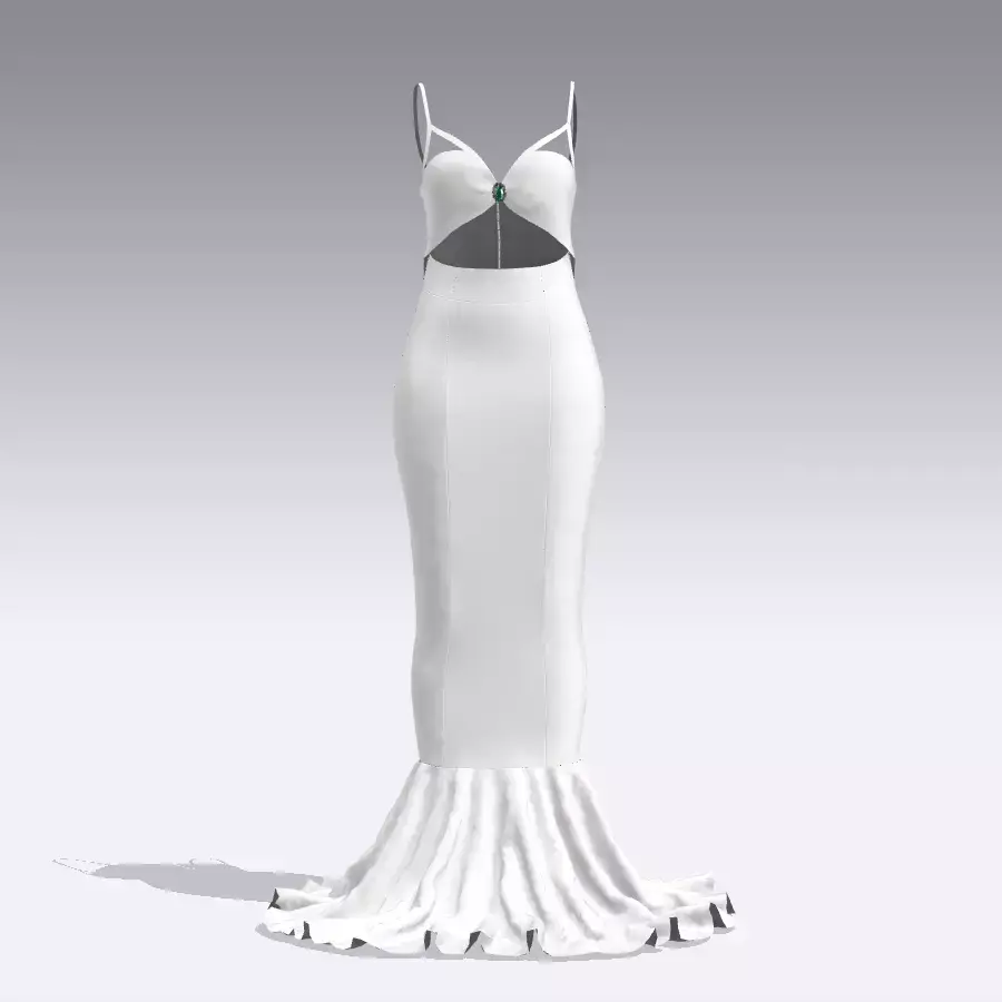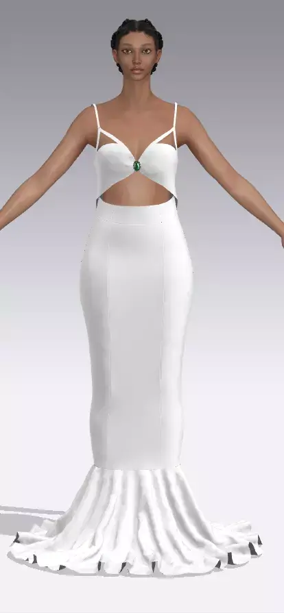 fish tail skirt dress and heart elastic window neckline blouse draped detail white color modern ruffled look