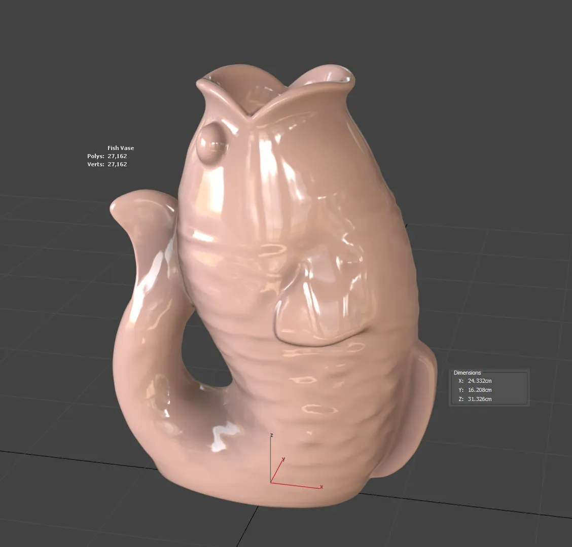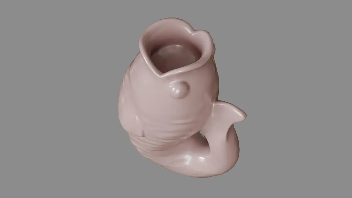 This highly detailed 3D model of a fish-shaped pitcher is perfect for adding a touch of whimsy and charm to your digital projects. The model features smooth curves, a playful aesthetic, and is meticulously crafted with quad topology for smooth subdivisions.
