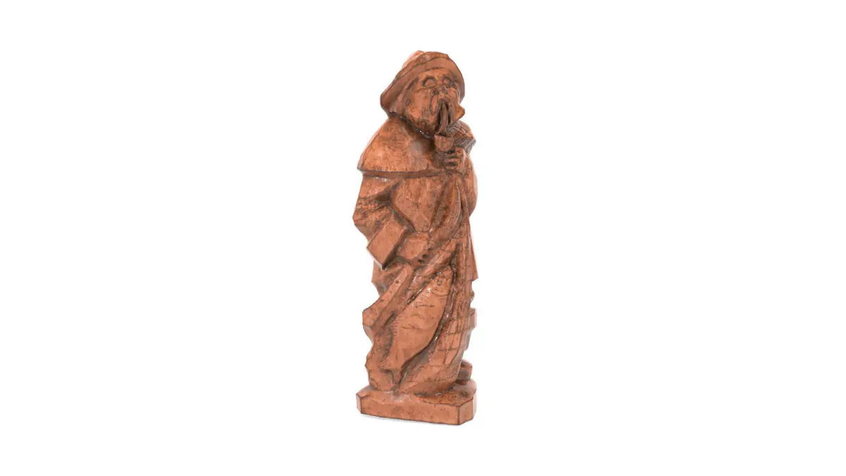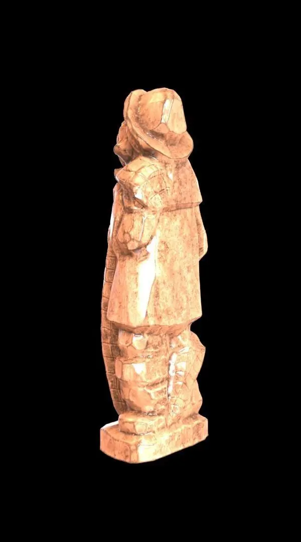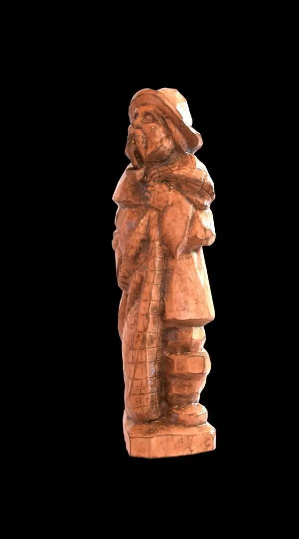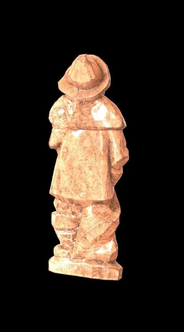 This is model of a wooden statue of a fisherman. It is unique, becauee the maker of this statue made all his statues by hand and all were unique.It comes only as obj file, but it has all the 4K textures added to it. Color, curvature, emission, gloss, metalness, specular. It has 2 color maps. One light gray-brown and an brown color. The mesh itself is decimated to 75000 triangles. Making it light enough for production.The pack comes with exports to different file formats. Also a blender 2.9 scene is included