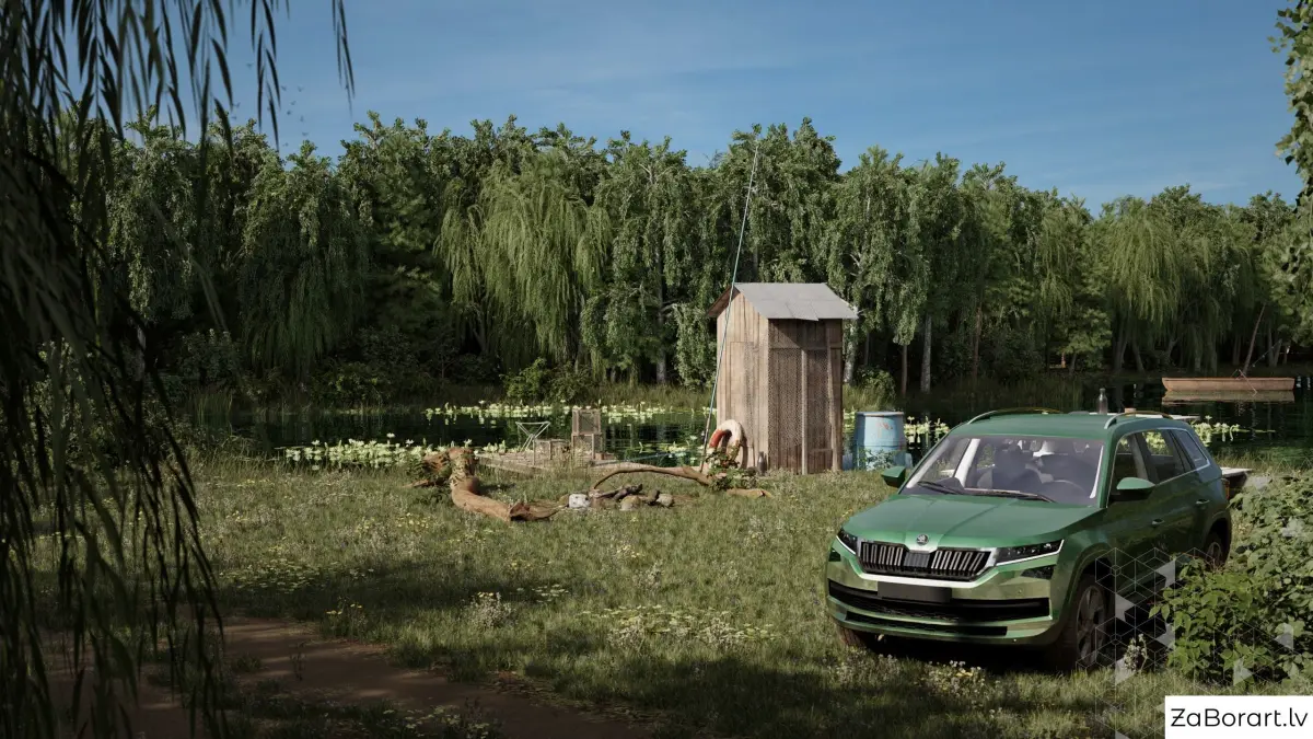 Car models have a high-detailed interior which can be easily modified.All plants and trees are low-poly, and the grass and other small objects were placed with a particle system.you can change plants placement by modifying the mesh weight map.