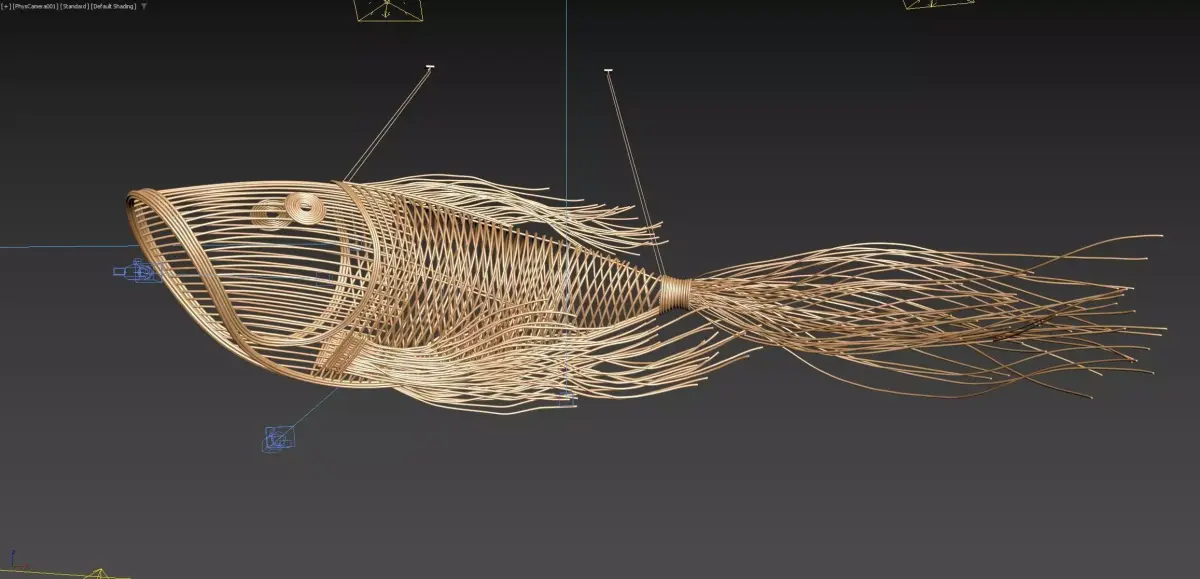 High-quality 3D bamboo fish decor model meticulously designed to replicate traditional handcrafted bamboo weaving. Perfect for interior decoration, cafés, restaurants, homestays, gardens, or any 3D architectural and design projects that require a natural, rustic touch.