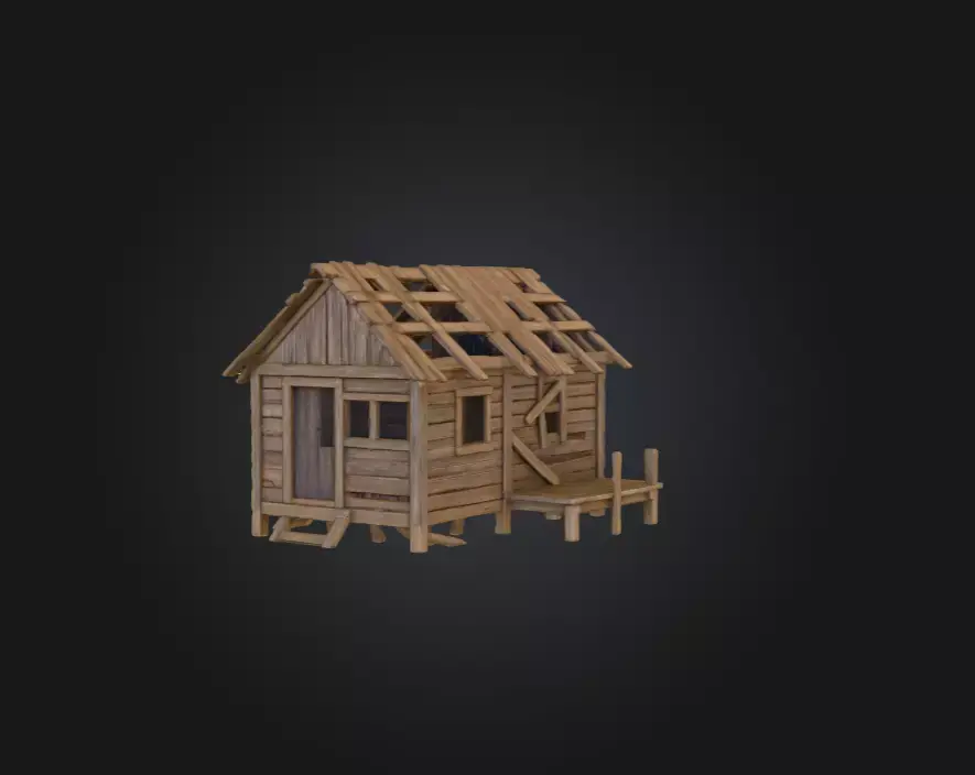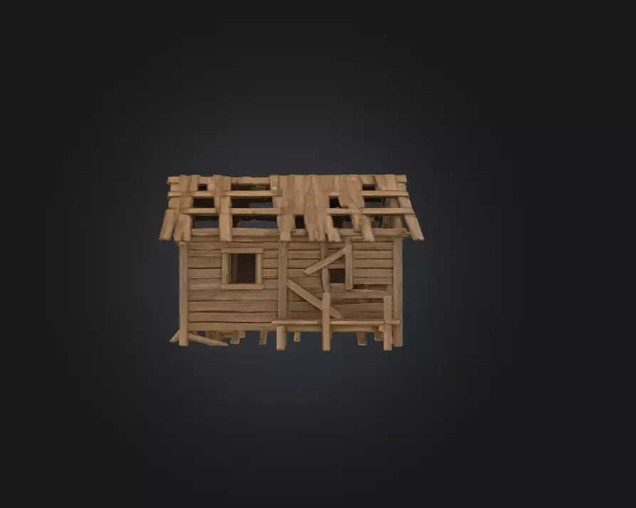 Stepping near the structure, one can imagine the soft rhythm of waves, the scent of fresh catches, and the rustle of nets hung along the walls. Now, the silence is broken only by the creaking of loose boards swaying gently with the wind. This abandoned hut carries its own form of melancholy beauty—an artifact of a forgotten craft, a small monument to labor, survival, and solitude. Its fragile state evokes a timeless narrative of nature reclaiming man-made spaces, slowly weaving vines, moss, and decay into the wood’s aging grain.Perfect for fantasy worlds, survival environments, nostalgic scenes, or storytelling-driven games, this ruined fishing hut adds depth, emotion, and atmosphere wherever it stands.