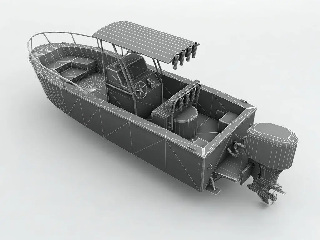 Fishing / Motor Boat - Boston Whaler #2 This model was designed to scale from blueprints. Although all the major dimensions are correct (length, height, width, etc.) every exact arc and measurement was not taken into account for engineering purposes. This model is best suited for entertainment and multimedia.