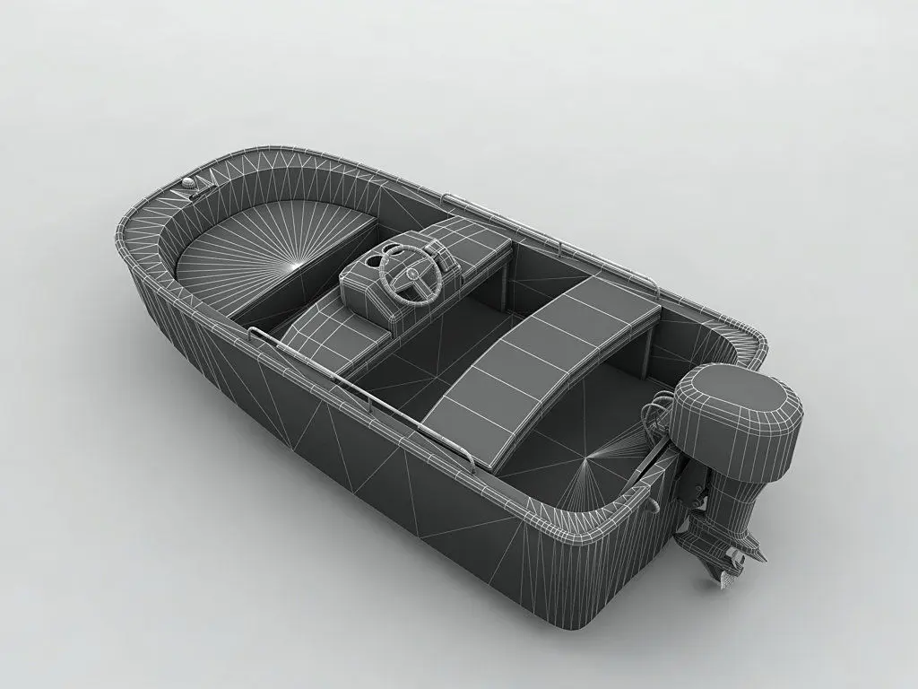Fishing Motor Boat / DinghyThis model was designed to scale from blueprints. Although all the major dimensions are correct (length, height, width, etc.) every exact arc and measurement was not taken into account for engineering purposes. This model is best suited for entertainment and multimedia.