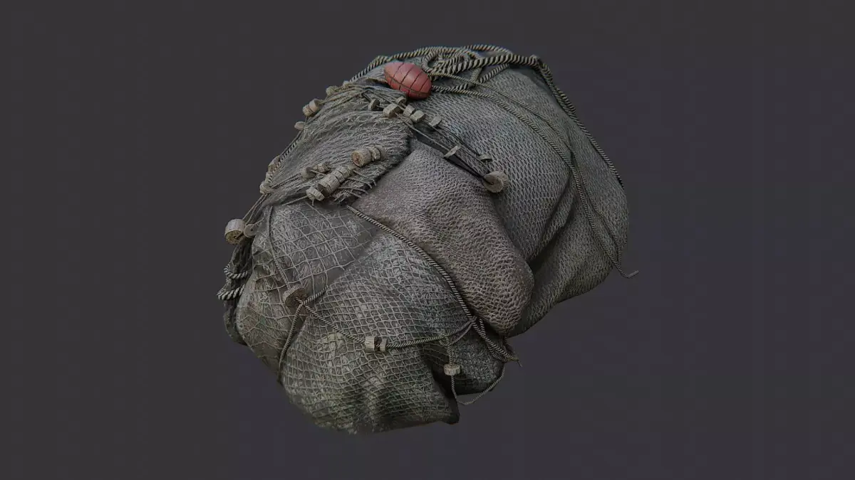 Weathered fishing nets piled together create a realistic coastal prop suitable for marine scenes, displays, and film sets. Crafted with detailed stitching, frayed fibers, and subtle wear, it adds texture to docks, harbors, and sea shore environments. Ideal for set dressing and visuals.