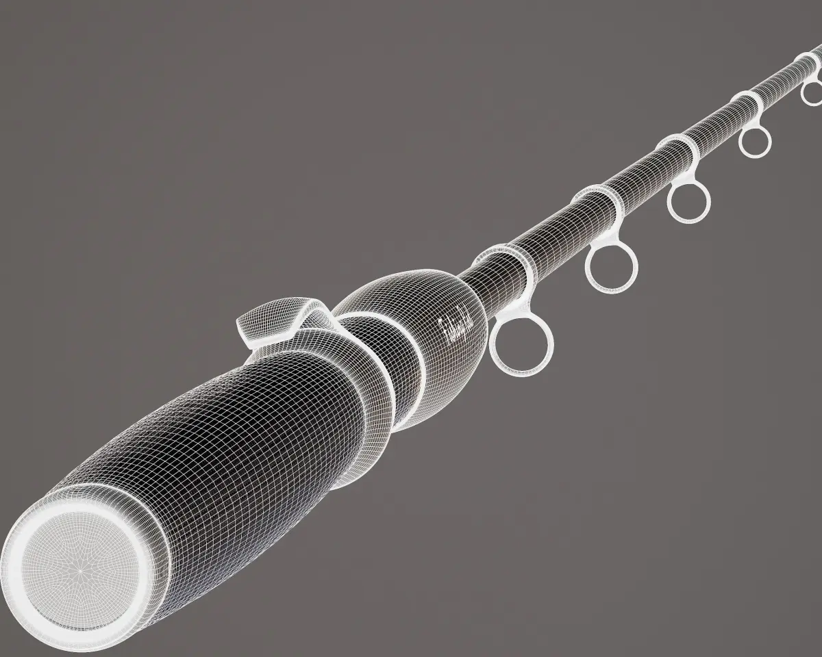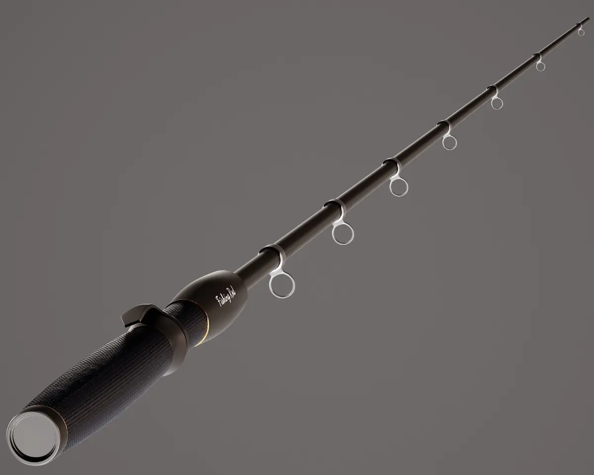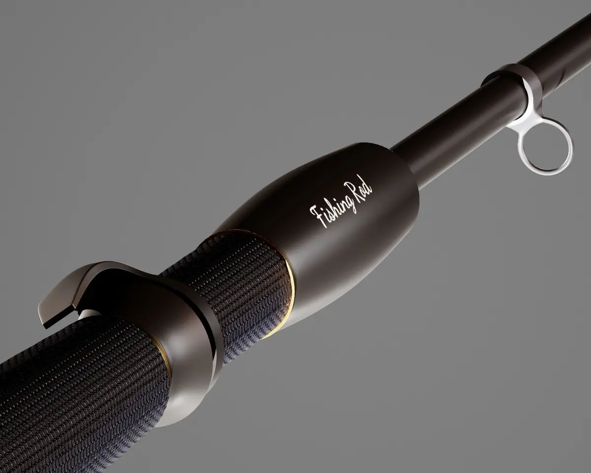Fishing Rod: A lightweight fishing rod made from carbon fiber. The rod comes in a protective tube with a shoulder strap for convenient transportation. The packaging features a serene image of a person fishing by the lake, along with the text Carbon Fiber Fishing Rod and Ideal for Freshwater and Saltwater Fishing.
