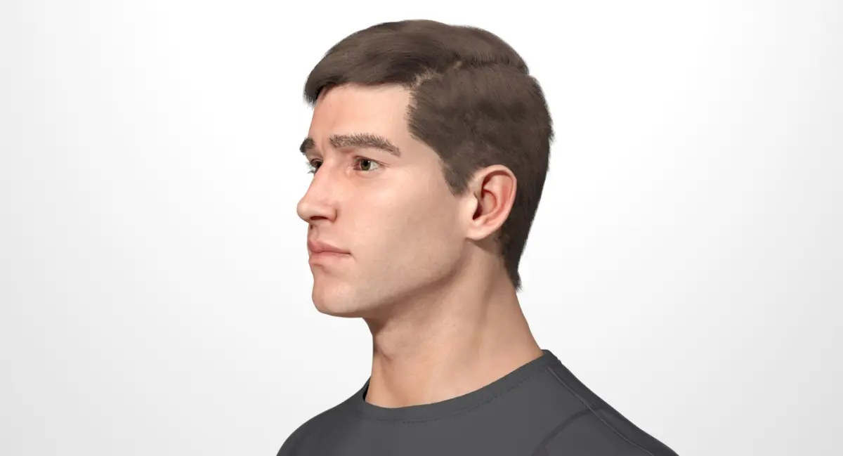 This is a rigged model of a high detail male character with European appearance.Originally created in ZBrush and Maya.GENERAL- Model is built to real world scale.- Units used: cm, model is 190 cm tall.- Walk cycle animation locates on separate animation level.- Scene objects are organized by layers and groups.- No third-party renderer or plug-ins needed.CHARACTER RIG- Modular rig with IK and FK modes for each limb. IK and FK controls for spine, head and jaw. Rig is based on Smooth Skin, corrective joint and corrective blend shapes.- 114 additional joints to correct geometry in complex poses driven by Set Driven Keys or Expressions. Which also can be keyed manually.- Gestures and poses attribute controls for hands and feet, also controls for individual fingers and toes poses.- Face controls consists of:basic skeleton IK/FK controls for jaw, lips, tongue, eyes, eyelids (including auto eye follow).25 blend shapes facial expressions attributes and 11 phonemes.extra 129 joints FK rig for tuning expressions.FEATURES- Ability to blend between limb's FK and IK joint chains or match one to another in one click.- Breathing adjustable auto animation.- Eyelids automatically follow eye by adjustable amplitude.- Tongue is controlled by IK Spline Handle. Tongue can be stretched and squeezed.- Head hair, brows and eyelashes are based on ZBrush Fiber Mesh curves.- All hair is driven by nDynamics.- Clothing is driven by nCloth.TEXTURES- 8192x8192 for the main body.- 4096x4096 and lower for the rest.PRESENTATION IMAGES- All preview images are rendered with Arnold- No compositing used, Product is ready to render as previews, lights and camera are included in file.