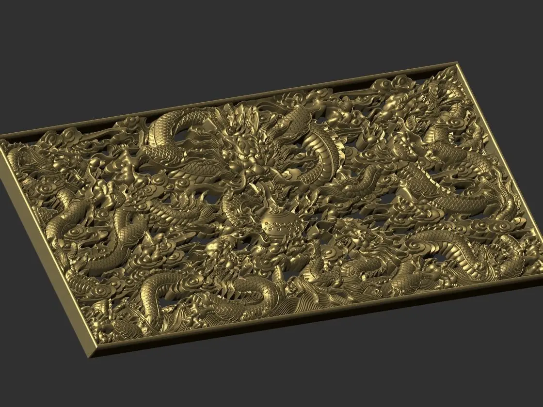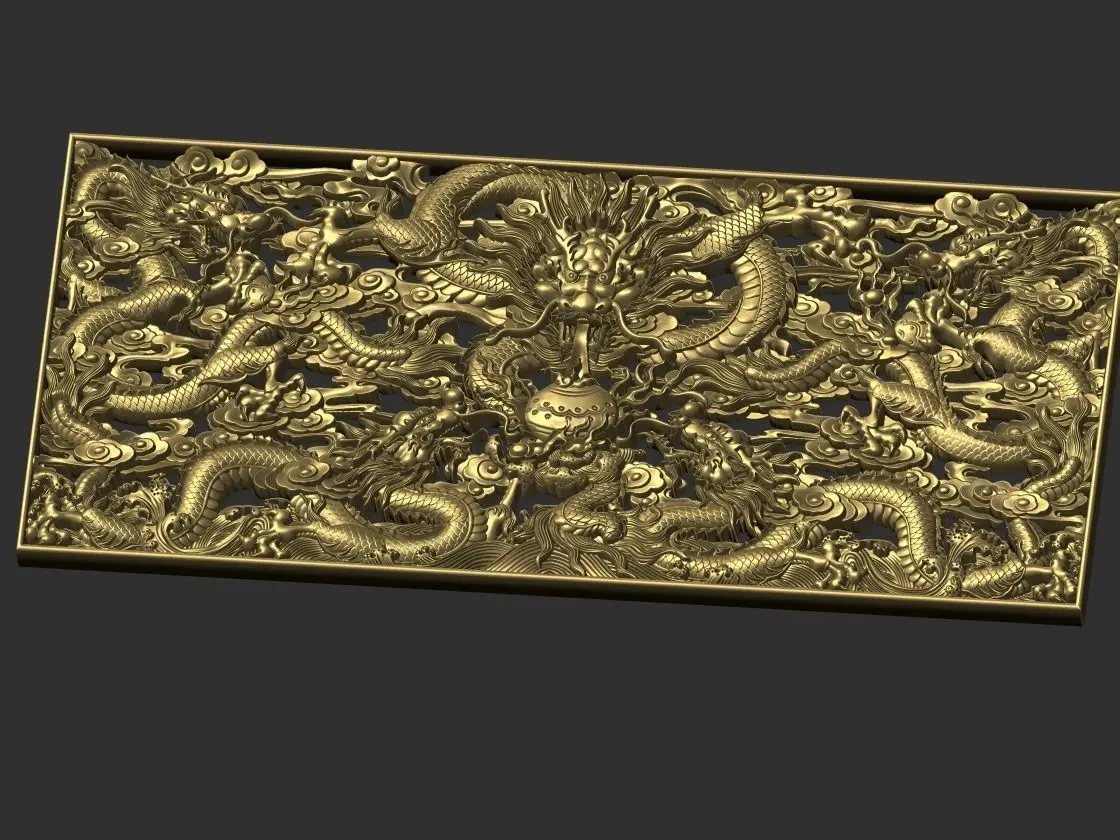3d model of bas-relief of the Five Dragons for CNC Router Carving or 3d printer.OBJ,STL format.